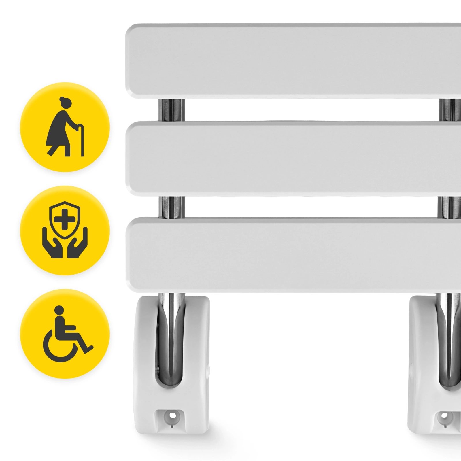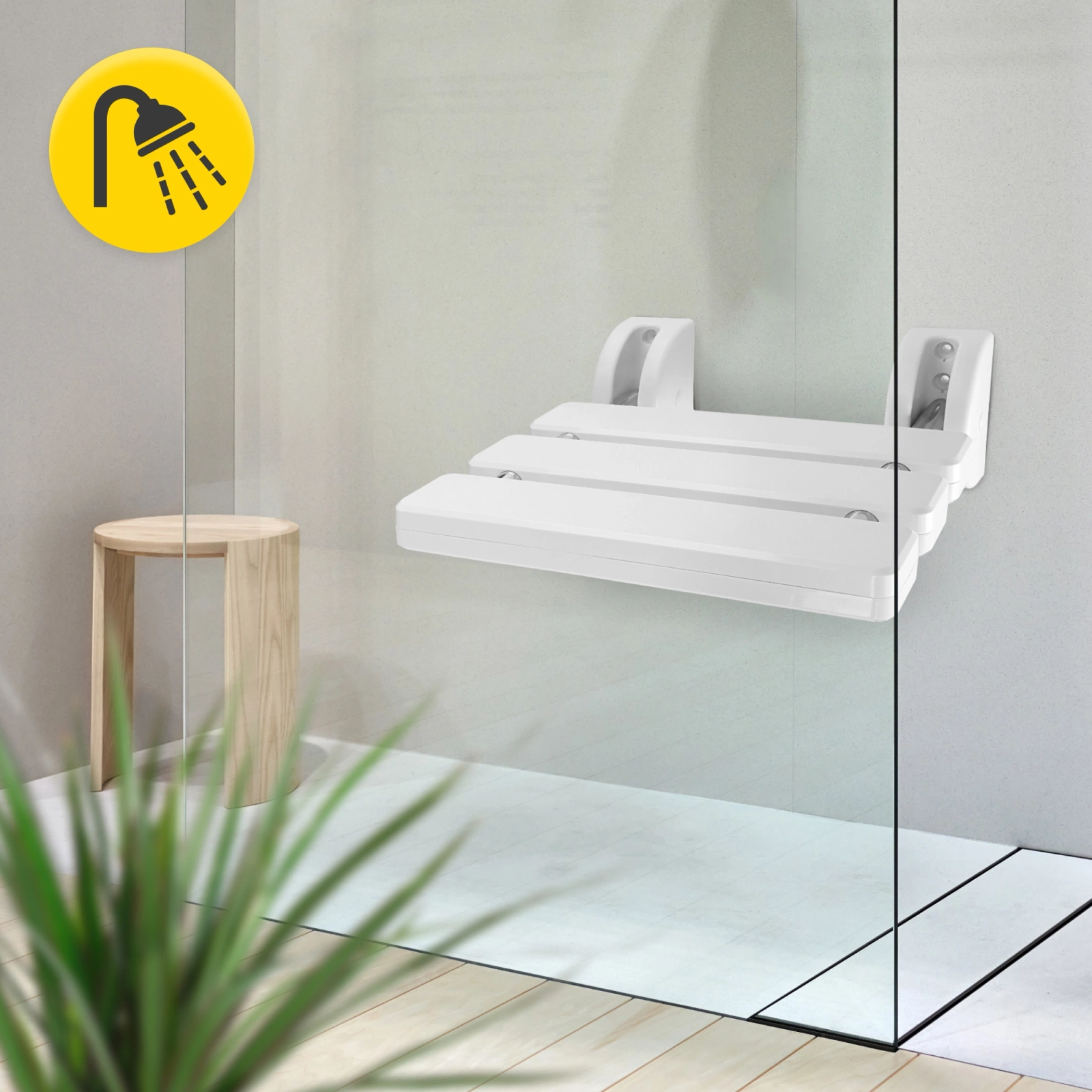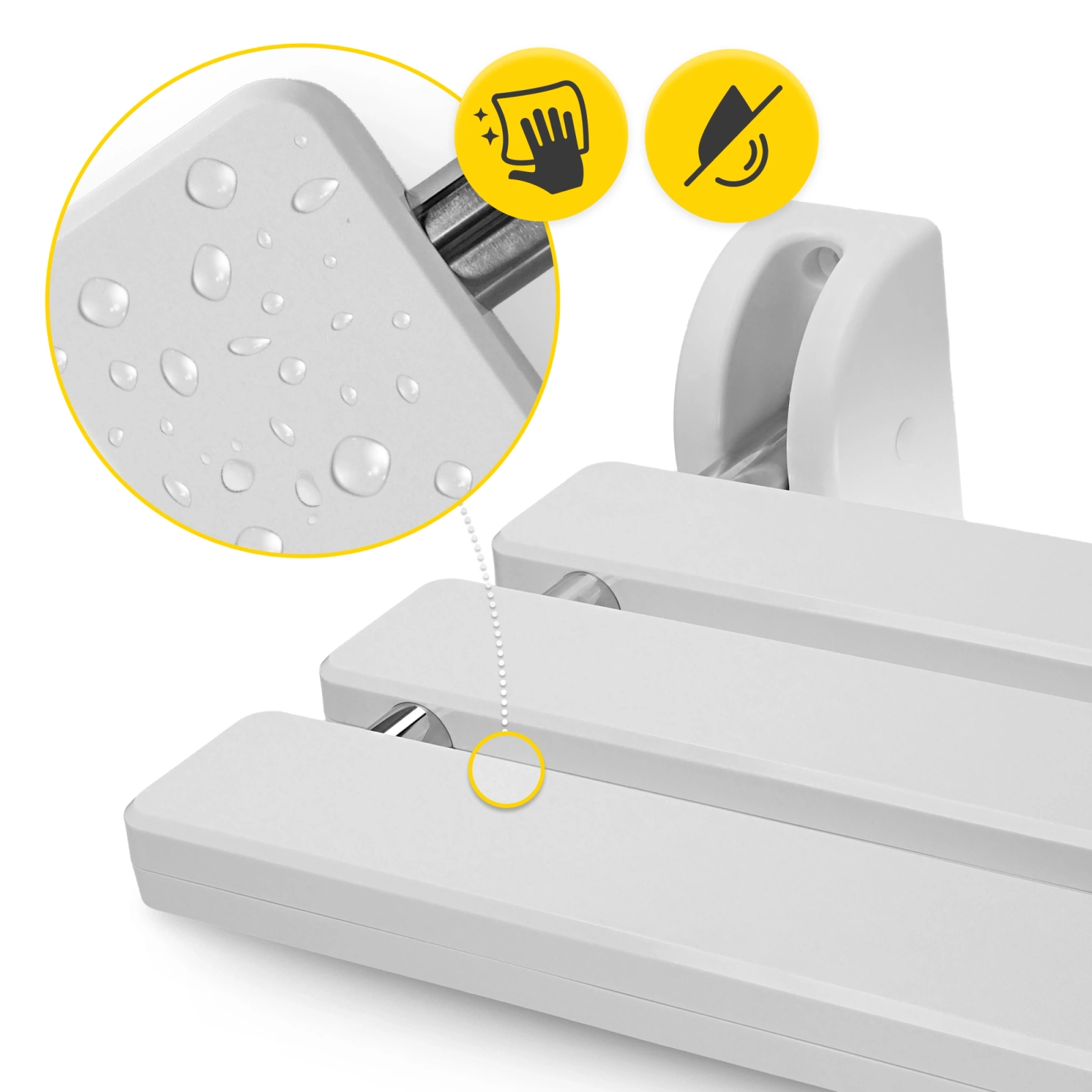 Datorită montării solide pe perete și funcției de pliere, scaunul de duș permite economisirea spațiului atunci când nu este utilizat. Este alegerea ideală pentru cabine de duș din apartamente, azile și spitale.