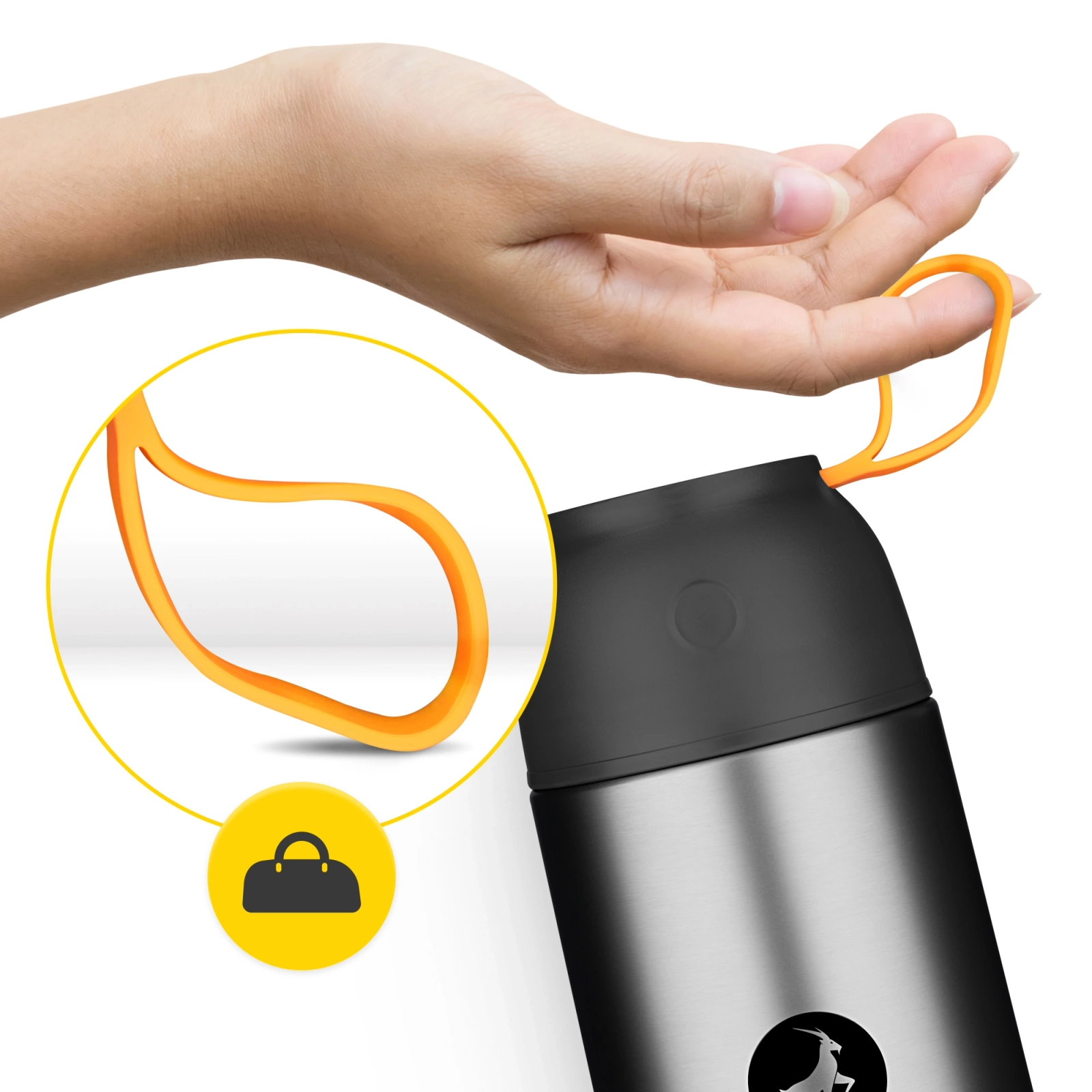 Termosul este fabricat din oțel inoxidabil 304, care garantează durabilitate, rezistență la deteriorare și ușurință în curățare. Capacul este fabricat din plastic PP, iar garniturile suplimentare din silicon alimentar asigură etanșeitate completă și siguranță în contact cu alimentele. Acesta este un termos care vă va servi mulți ani, indiferent de condiții.