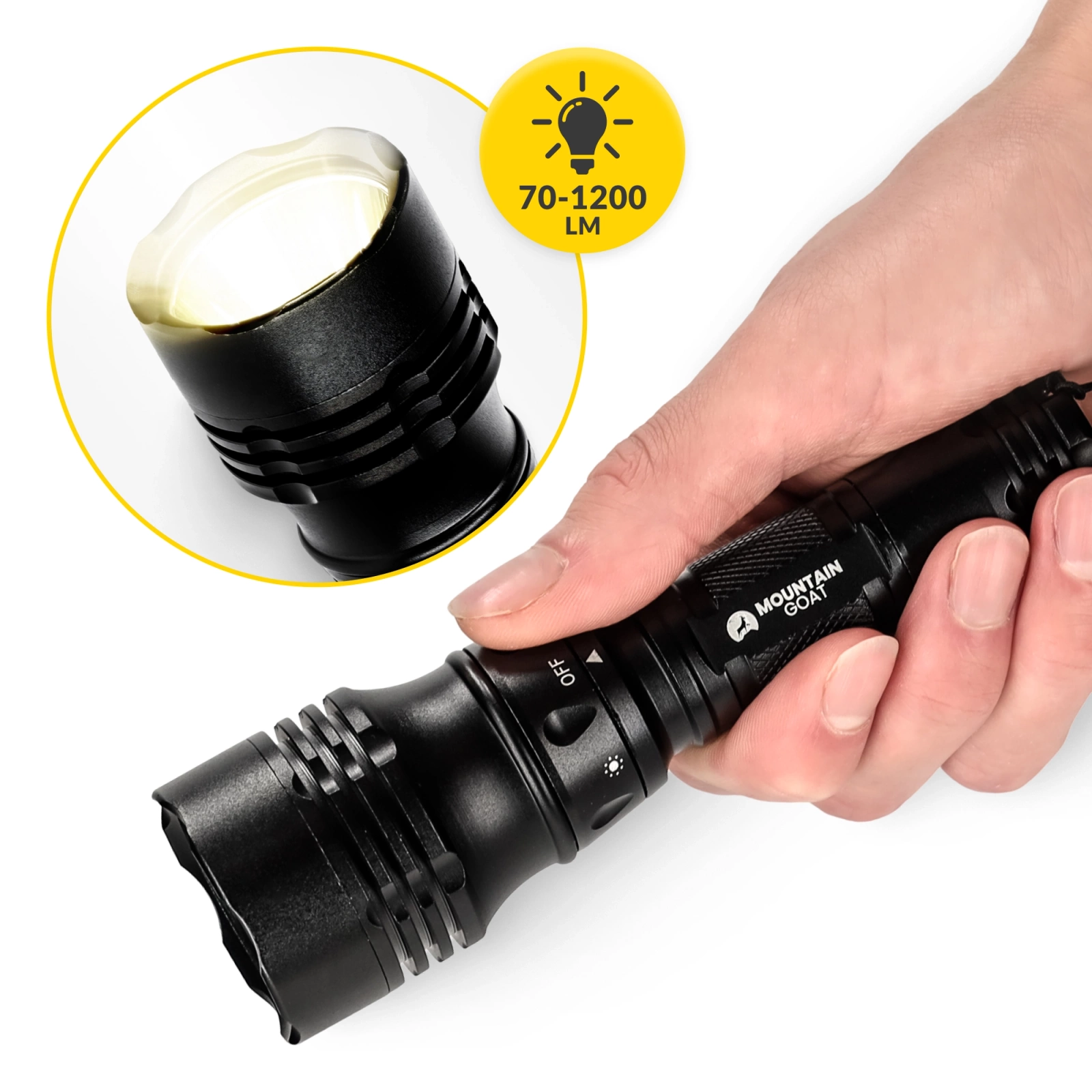 Lanterna MOUNTAIN GOAT oferă ceva ce veți aprecia într-o varietate de situații - focalizarea reglabilă a luminii. Un cadran vă permite să reglați cu ușurință lățimea fasciculului de lumină pentru a se potrivi nevoilor dvs. Căutați ceva într-o cameră întunecată sau rămâneți fără curent? Lărgiți raza de iluminare pentru a acoperi o zonă mai largă. Iar dacă trebuie să vă concentrați asupra unei lucrări precise, restrângeți pur și simplu fasciculul pentru a ilumina exact ceea ce aveți nevoie. Această ajustare vă oferă control deplin asupra puterii și direcției luminii - fie că căutați obiecte mici sau iluminați zone îndepărtate.