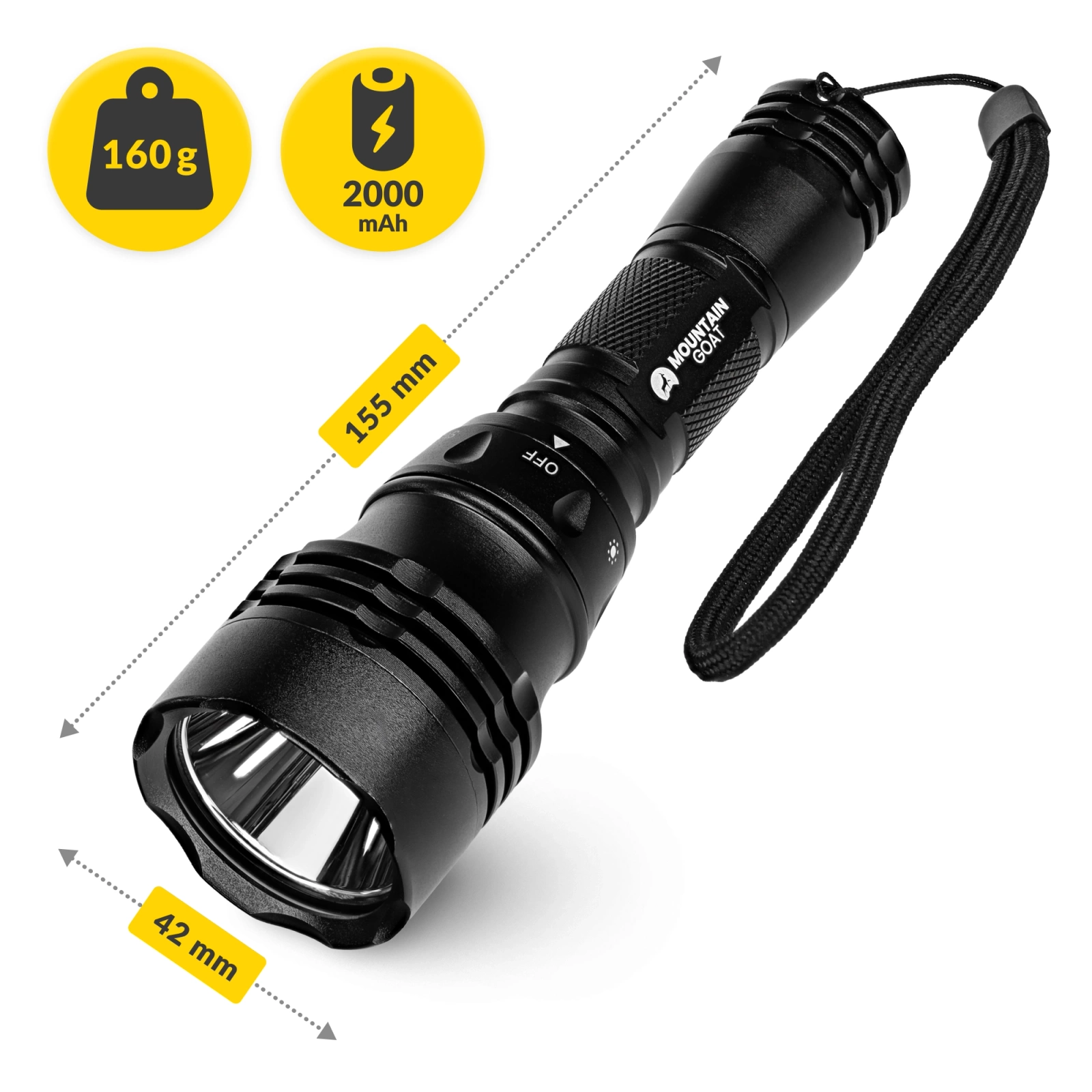 Lanterna LED MOUNTAIN GOAT va fi utilă în multe situații de zi cu zi. Când se întrerupe curentul electric, folosiți lumina sa puternică în locul unei lumânări. În garaj, va lumina locurile greu accesibile, iar în camping, va fi excelentă în cort sau în timpul plimbărilor nocturne. Pasionații de pescuit, ciclism sau alpinism vor aprecia, de asemenea, fiabilitatea sa. Ușor și la îndemână, acesta va încăpea într-un rucsac sau în torpedou. Forma ergonomică oferă o prindere confortabilă și sigură, iar butoanele intuitive fac comutarea modurilor rapidă și ușoară. O singură mișcare este suficientă pentru a regla lumina în funcție de situație.
