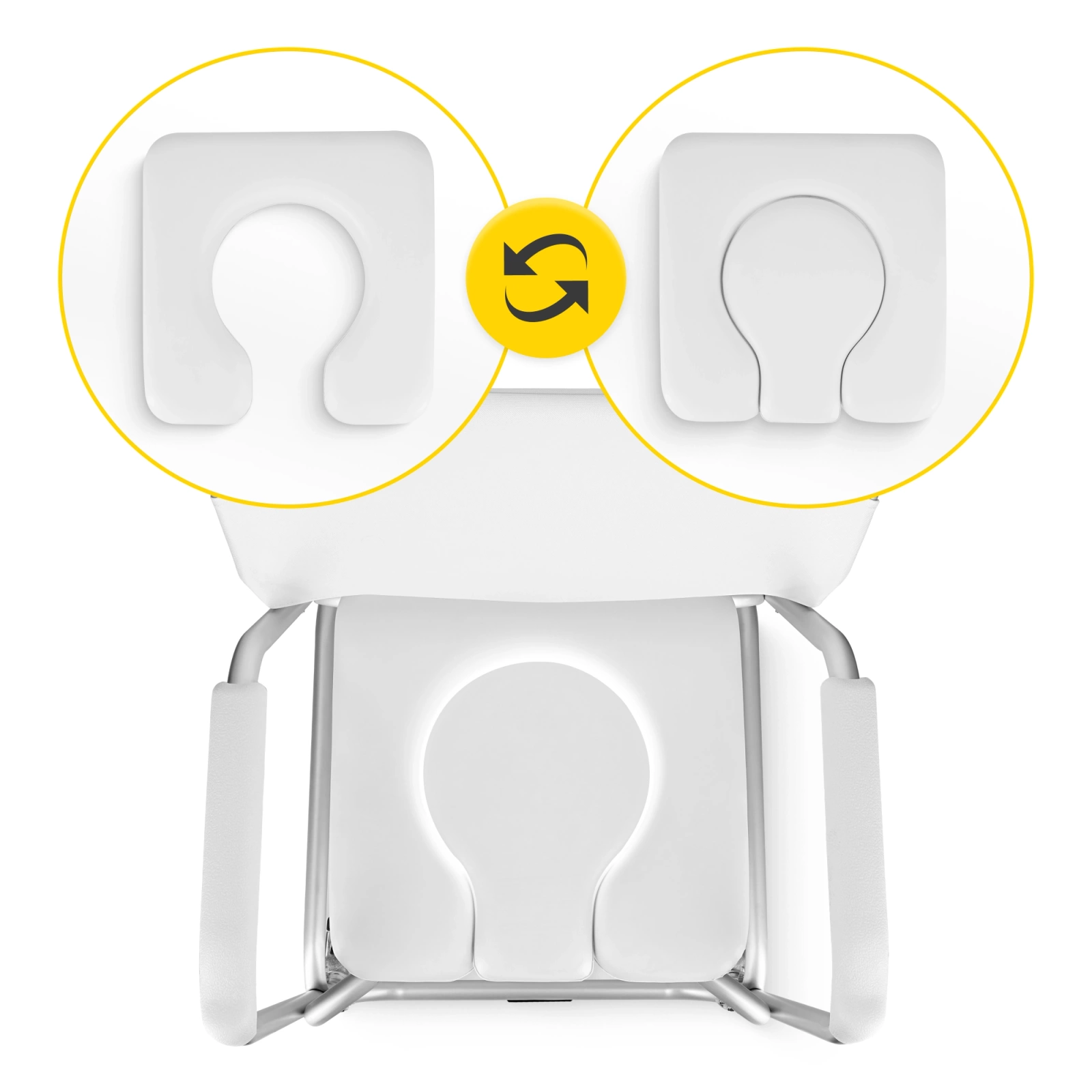 Scaunul practic al căruciorului pentru toaletă și duș 4FIZJO a fost conceput astfel încât să poată fi utilizat în două moduri. Cum?