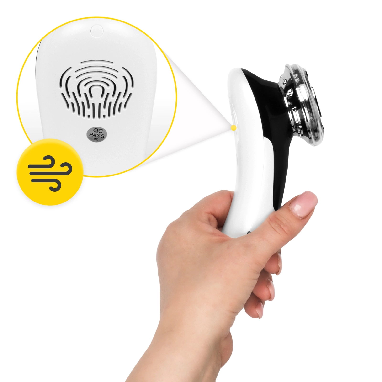 Aparatul de masaj facial 4FIZJO 5-în-1 este o soluție completă pentru persoanele care doresc să aibă grijă de pielea lor fără a fi nevoie să cheltuiască sume mari la un salon de înfrumusețare. Dispozitivul oferă 5 moduri de îngrijire care, împreună, formează o rutină completă – de la curățare și răcire, la hidratare, până la lifting EMS și stimularea sintezei de colagen.