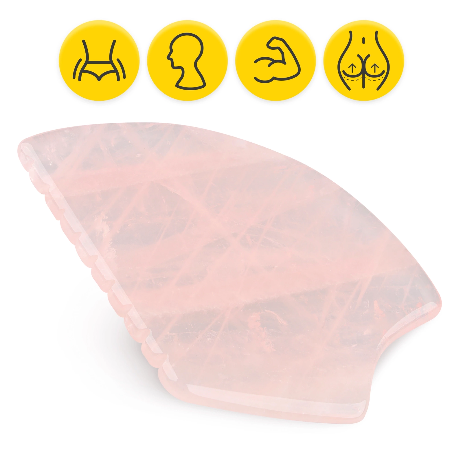 Piatra de cuarț roz cu margine zimțată, 4FIZJO, are aproximativ 9,5 cm lungime și aproximativ 7 cm lățime. Dimensiunea sa, care este destul de mare pentru o piatră Gua Sha, înseamnă că în timpul masajului, placa acoperă o suprafață mai mare, facilitând și accelerând astfel întregul proces de masaj.