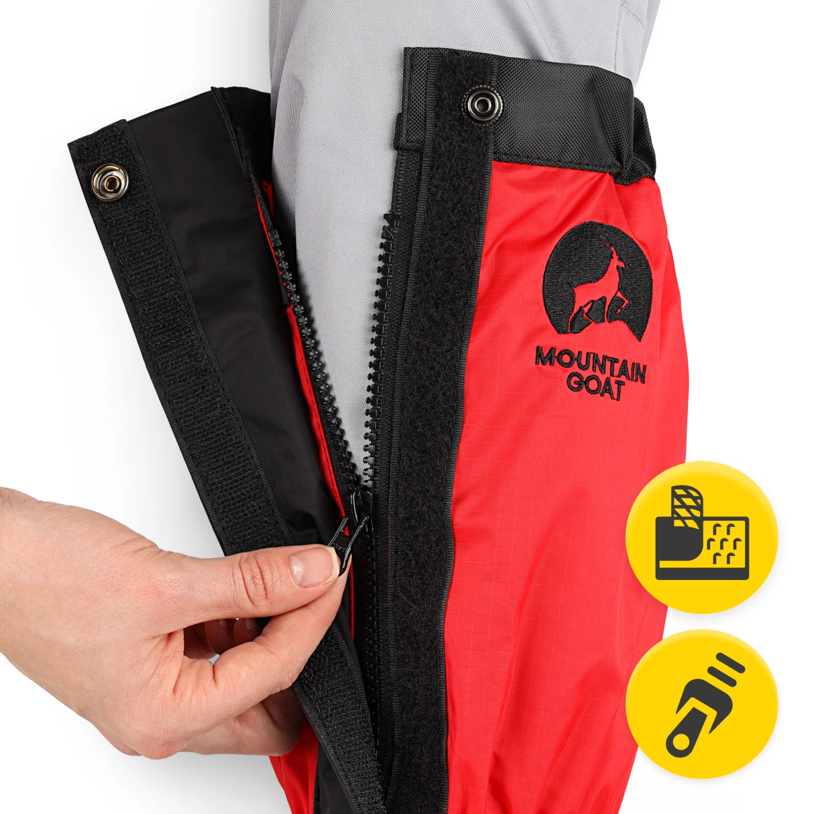 Căutați ghetre lungi care ajung sub genunchi și oferă protecție eficientă împotriva apei, noroiului sau nisipului? Atunci alegeți ghetre MOUNTAIN GOAT într-o mărime universală, cu o înălțime de până la 40 cm!