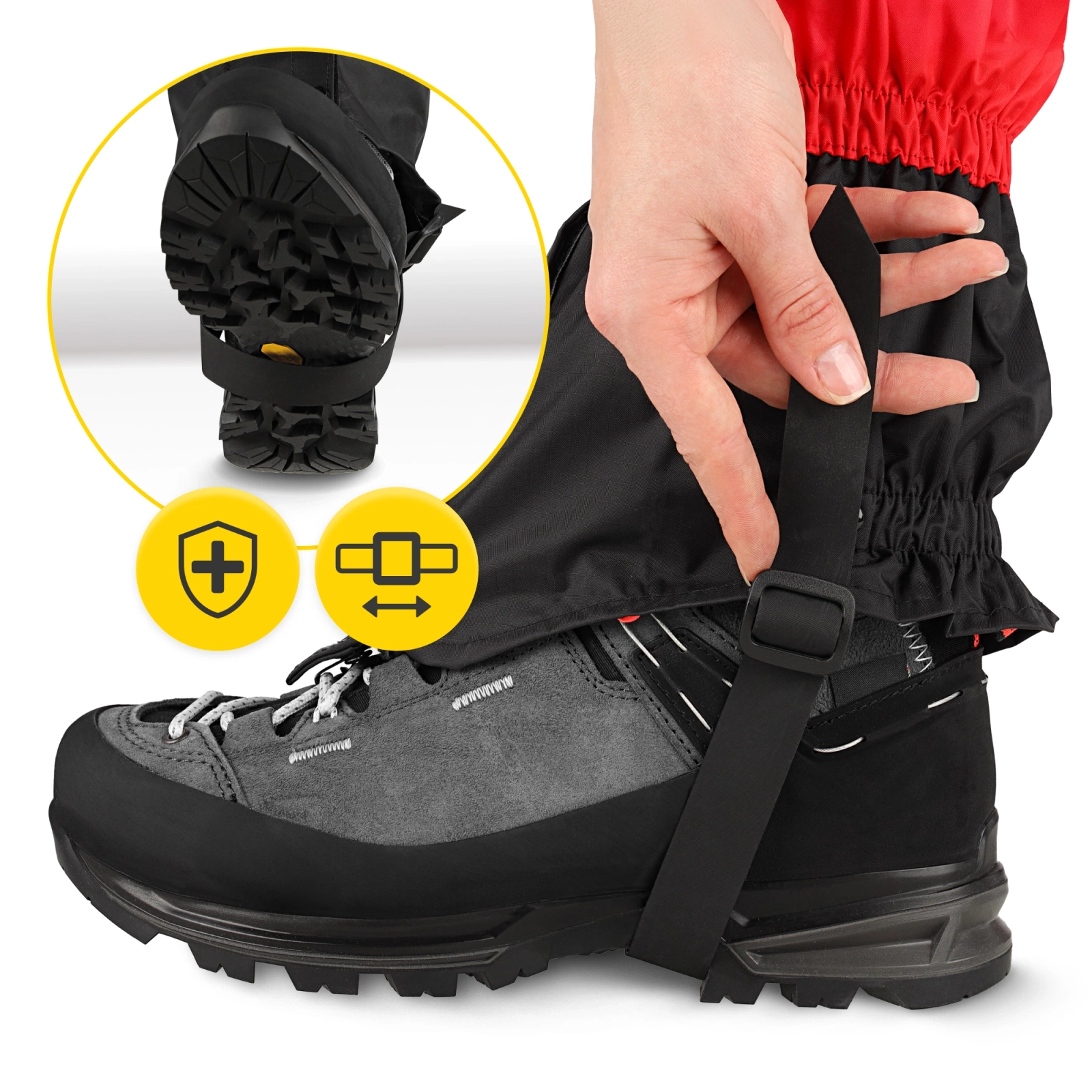 Ghetrele impermeabile pentru drumeții sunt un accesoriu care se va dovedi util în multe activități în aer liber desfășurate iarna și toamna – de exemplu, când urcați pe zăpadă sau faceți drumeții pe teren noroios. Datorită designului special și materialului impermeabil, acestea protejează nu numai împotriva zăpezii, ci și împotriva noroiului, ploii, nisipului și chiar pietrișului.