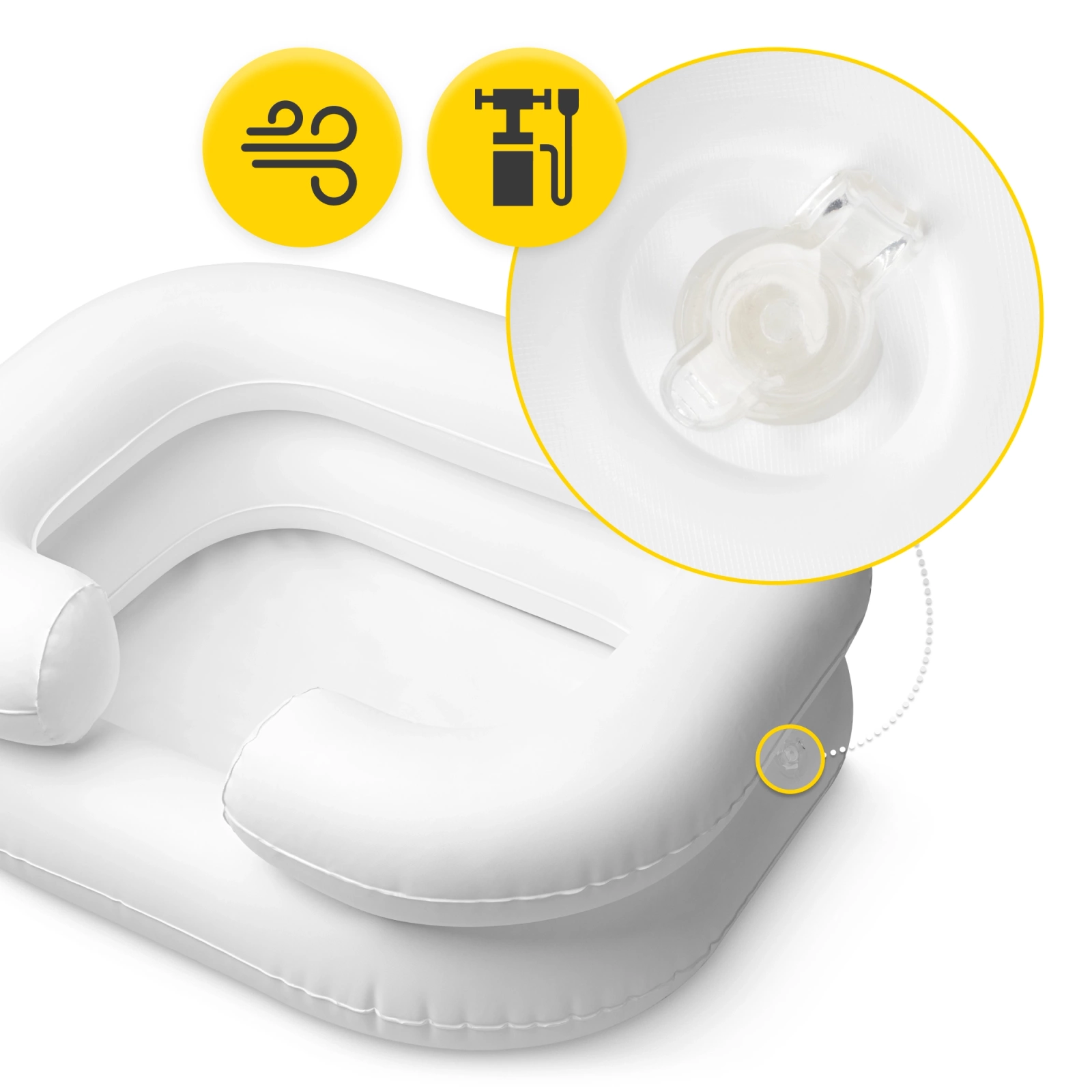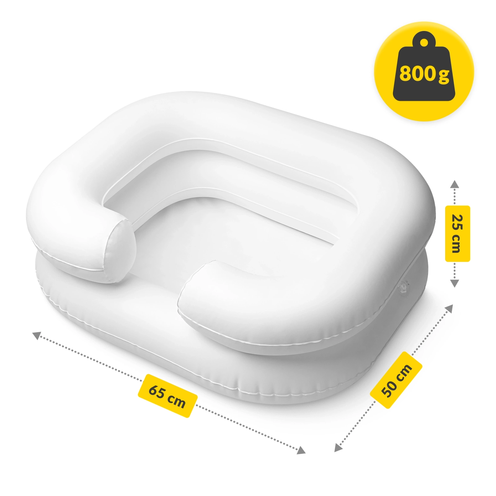 Când boala sau convalescența te țin la pat pentru o perioadă lungă, chiar și activitățile simple pot fi o provocare. Cada gonflabilă pentru spălat părul permite îngrijirea și menținerea curățeniei scalpului și părului fără a fi nevoie să te ridici din pat. Forma gonflabilă a căzii este extrem de ușor de folosit, iar construcția etanșă împreună cu perna pentru cap bine concepută protejează așternuturile și persoana aflată la pat de stropire.