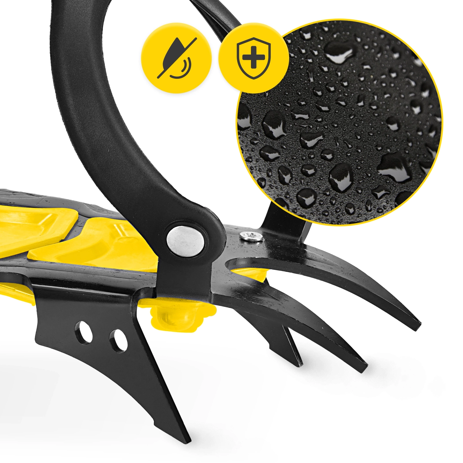 Colțarii STANDARD sunt echipați cu 12 țepi din oțel, care asigură o aderență excelentă pe suprafețe înghețate și acoperite cu zăpadă. Fiecare țep este profilat astfel încât să pătrundă eficient în gheață, oferind stabilitate sigură la fiecare pas.