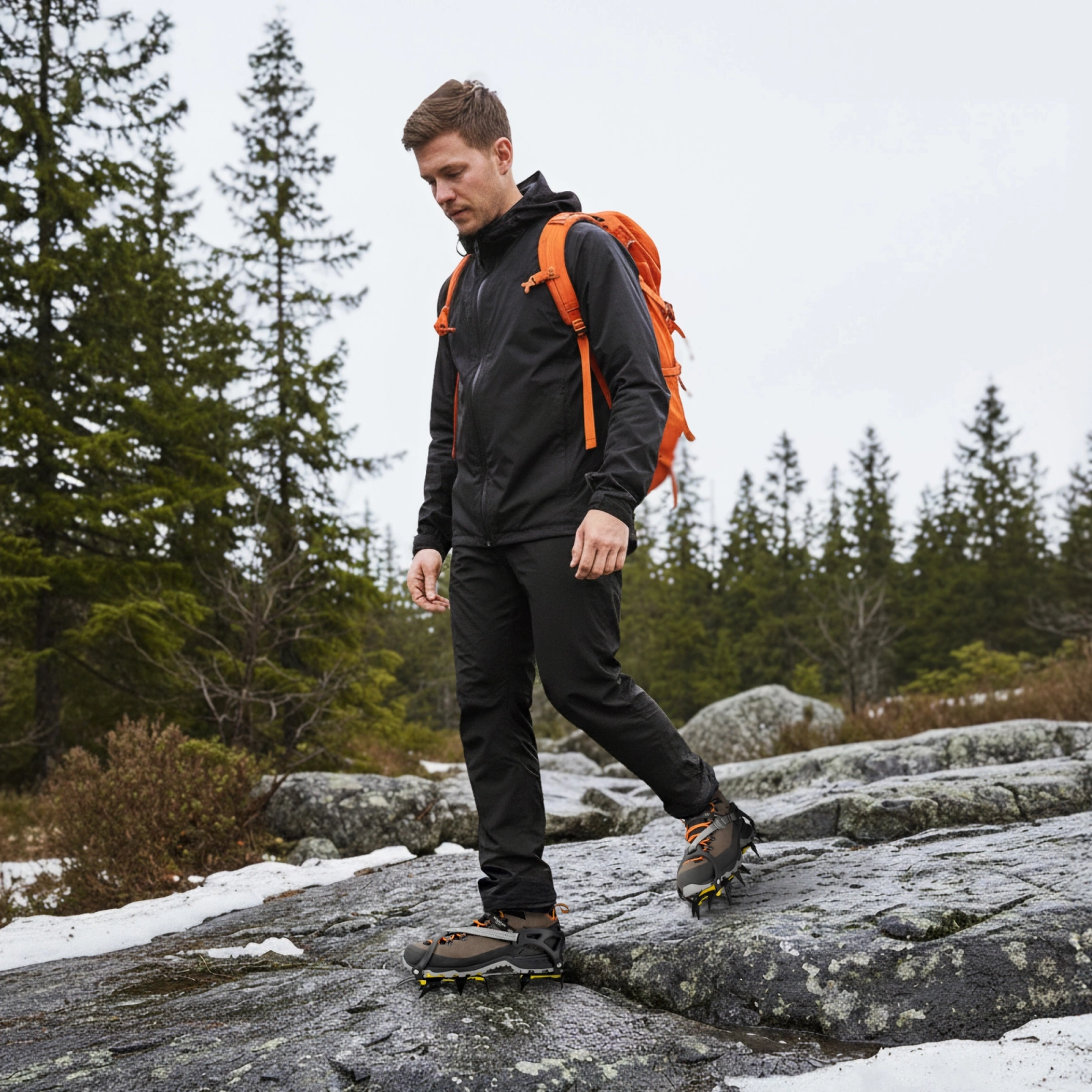 Cadrul elastic din TPE rezistent la fisuri și deformări își păstrează elasticitatea chiar și la temperaturi scăzute, ceea ce face ca colțarii să fie ușor de pus și adaptat la diferite tipuri de încălțăminte – de exemplu, încălțăminte de trekking cu talpă dură sau încălțăminte de munte ușor rigidizată.