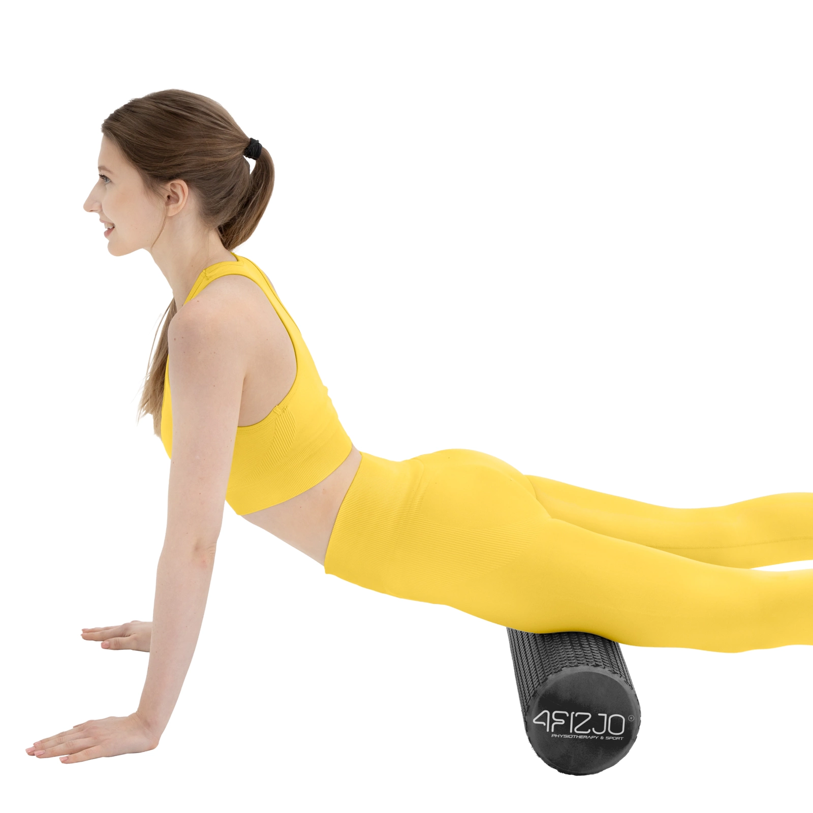 1. Ameliorarea statică a punctelor trigger – întinde-te pe rolă având în vedere zona dureroasă și crește treptat presiunea. Apasă pe rolă până când simți că tensiunea din corp scade.