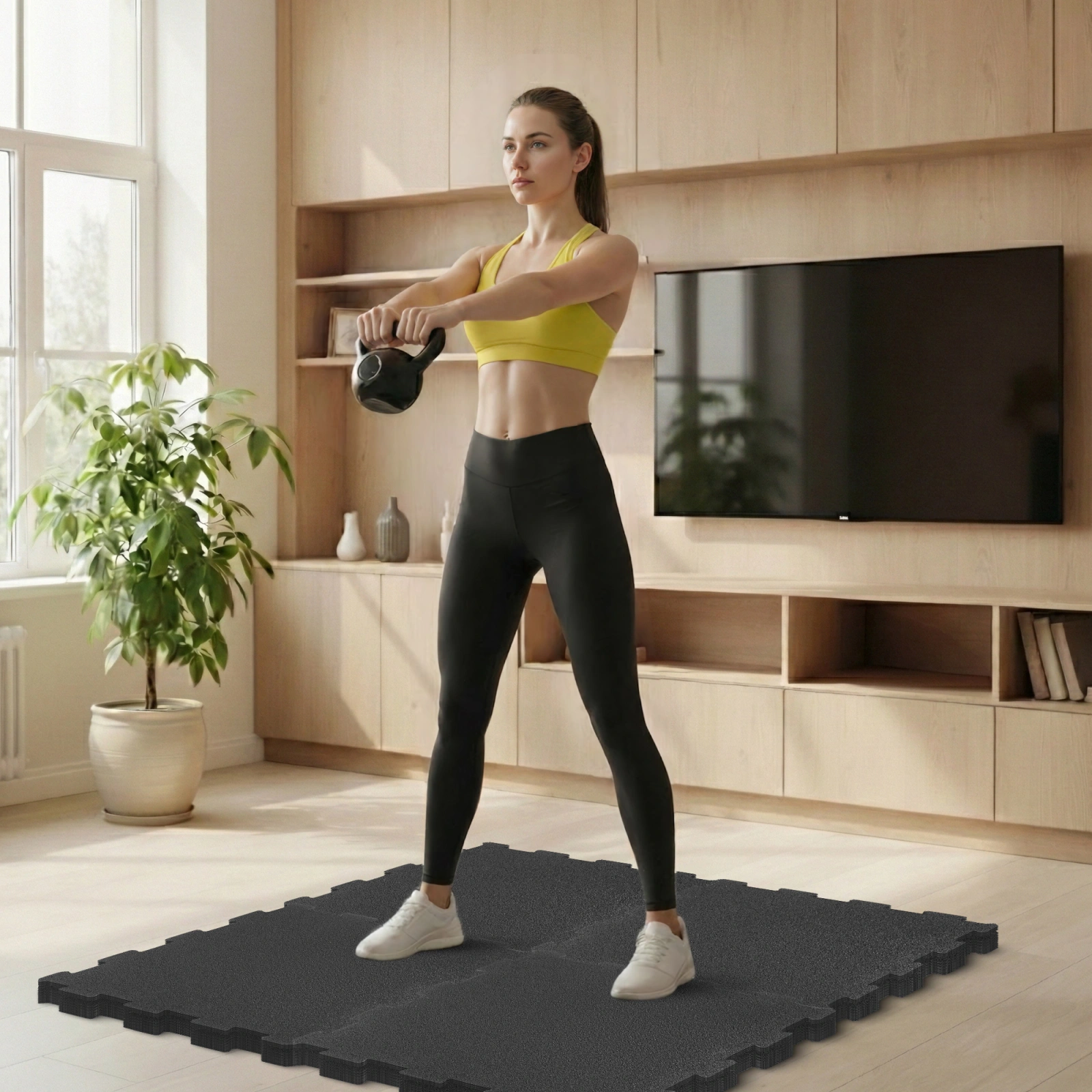 ▶️ ca saltea de protecție pentru echipamente fitness precum: bicicletă staționară sau eliptică, bandă de alergare sau aparat multifuncțional.