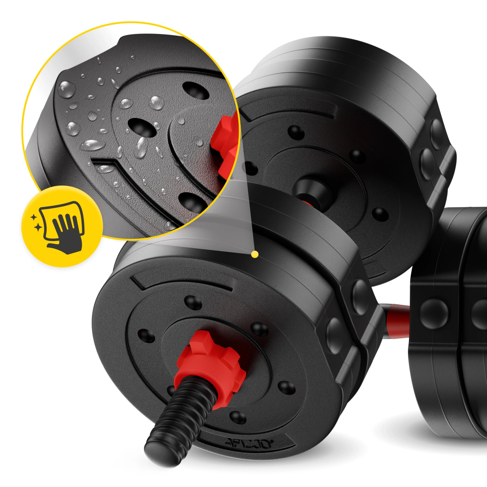 Setul de haltere bituminoase reglabile este un echipament cu care vei efectua un antrenament complet de forță pentru întregul corp, atât în picioare, cât și întins pe bancă. Cu ajutorul greutății bituminoase alese corespunzător, îți vei întări și dezvolta bicepsul, tricepsul, umerii, mușchii spatelui și ai pieptului. Dacă optezi pentru genuflexiuni, fandări sau pași laterali cu ganterele în mână, îți vei întări și mușchii picioarelor.