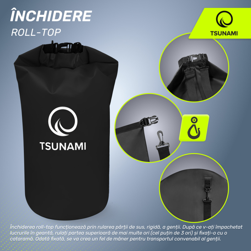 Cum să închizi corect sacul sportiv impermeabil TSUNAMI?