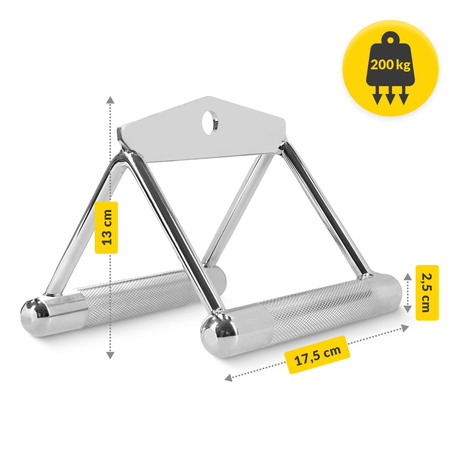 Mânerul triunghiular pentru cabluri atlas este un instrument esențial pentru un antrenament complex al mușchilor din partea superioară a corpului. Verifică parametrii acestuia pentru a alege mânerul perfect adaptat nevoilor tale.