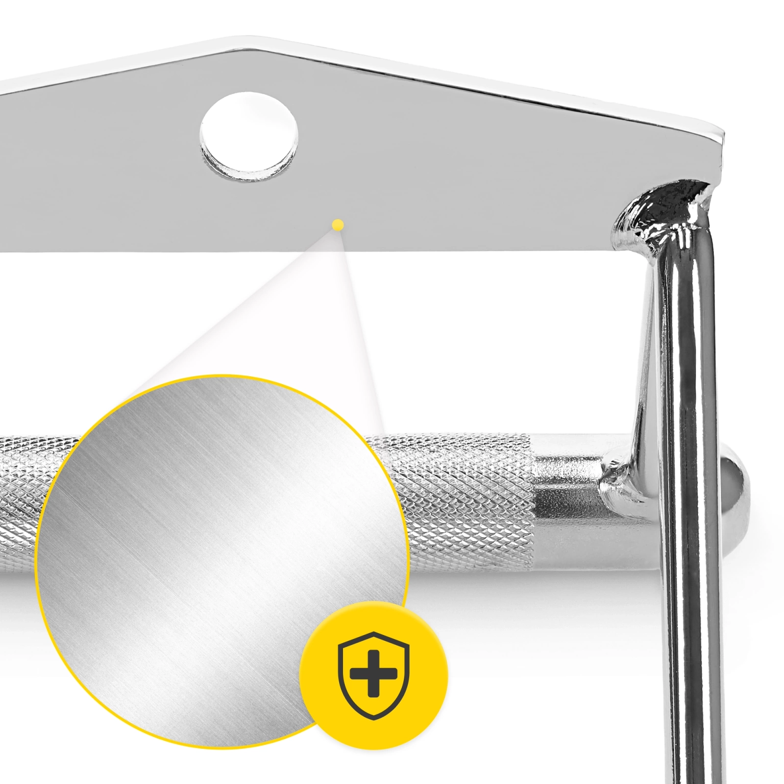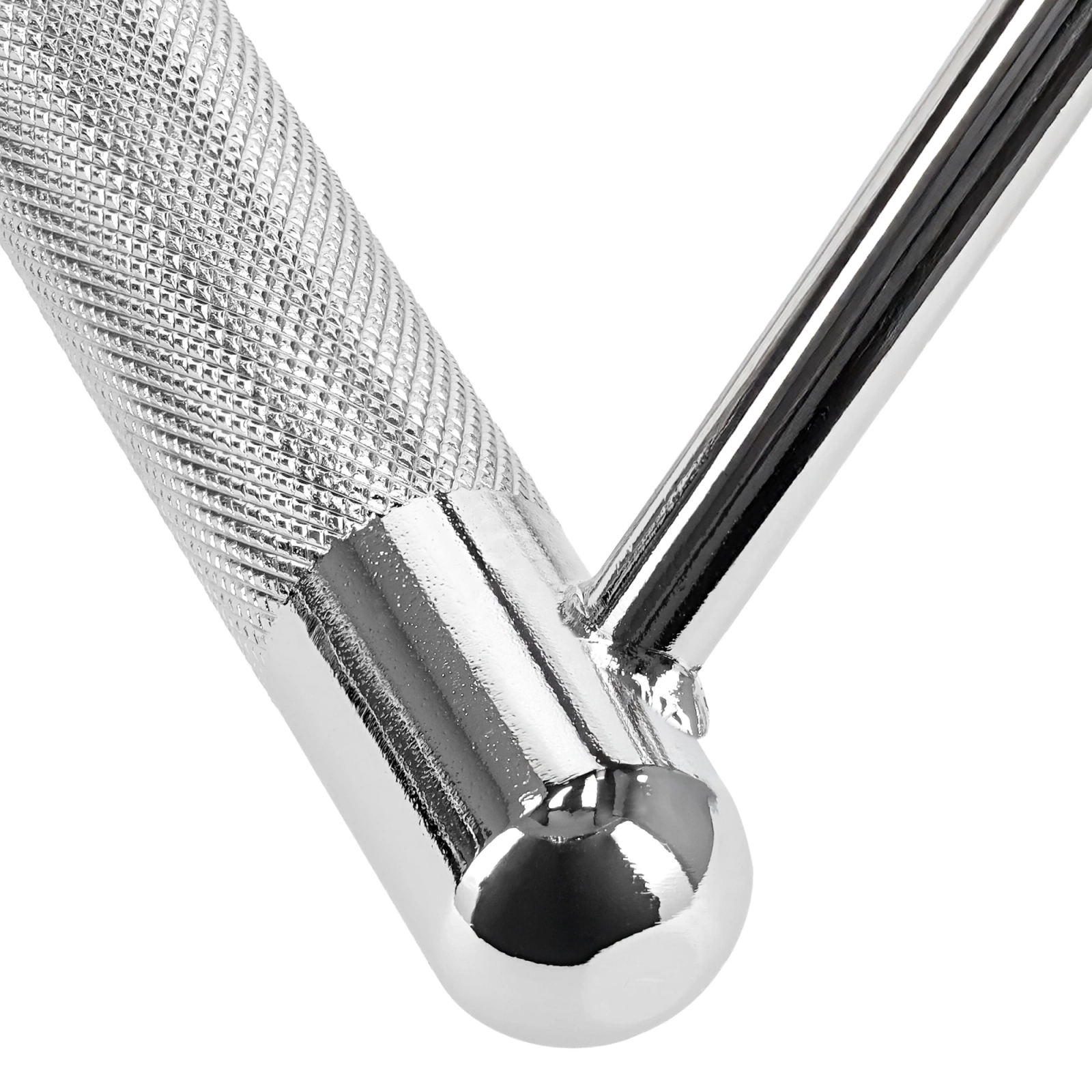 ✅ Mânerul texturat împiedică alunecarea din mâini în timpul antrenamentului, fiind extrem de util în exercițiile cu greutăți mari.