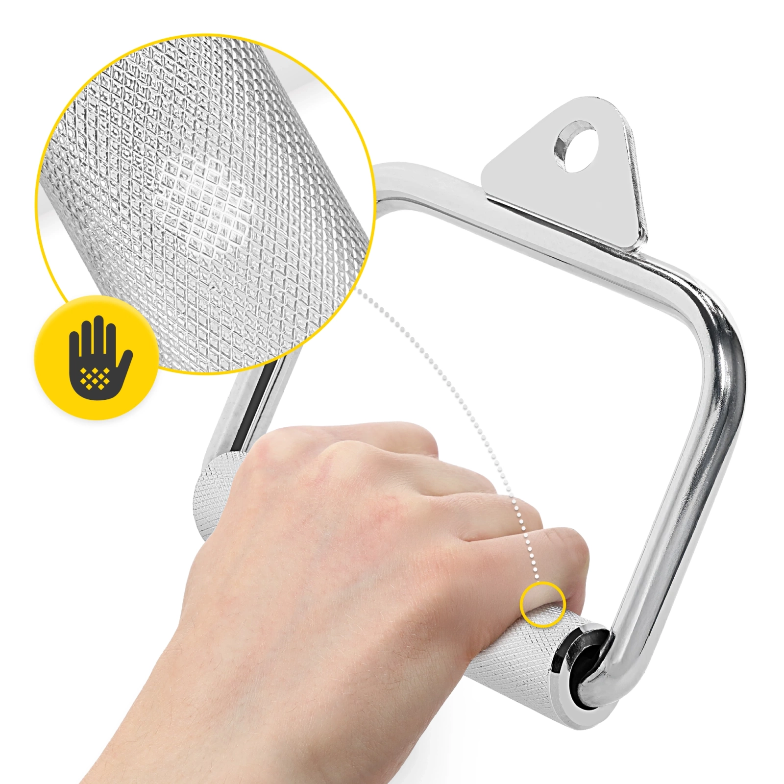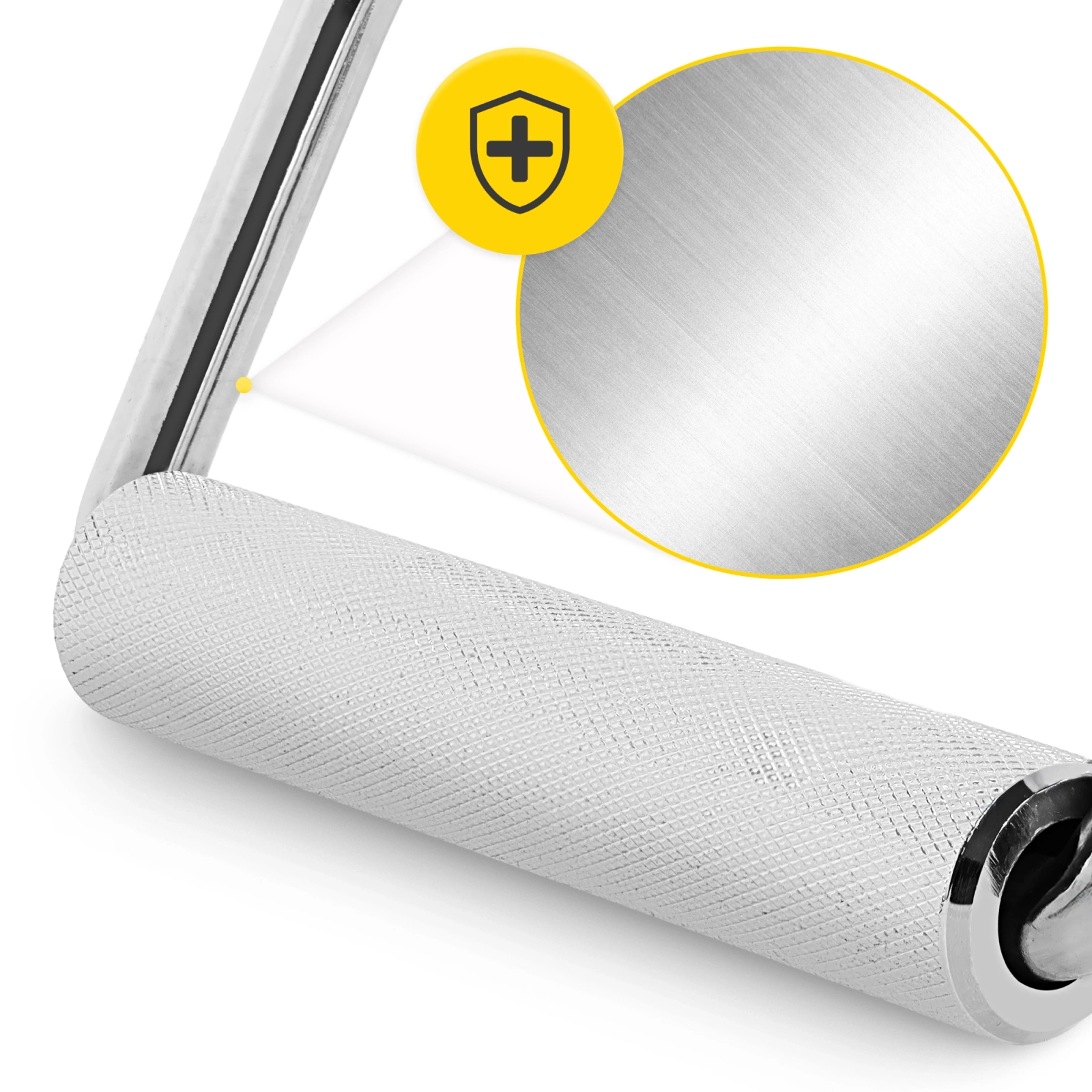 ✅ Mânerul texturat previne alunecarea acestuia din mână în timpul antrenamentului, fapt extrem de util în exercițiile cu greutăți mari.