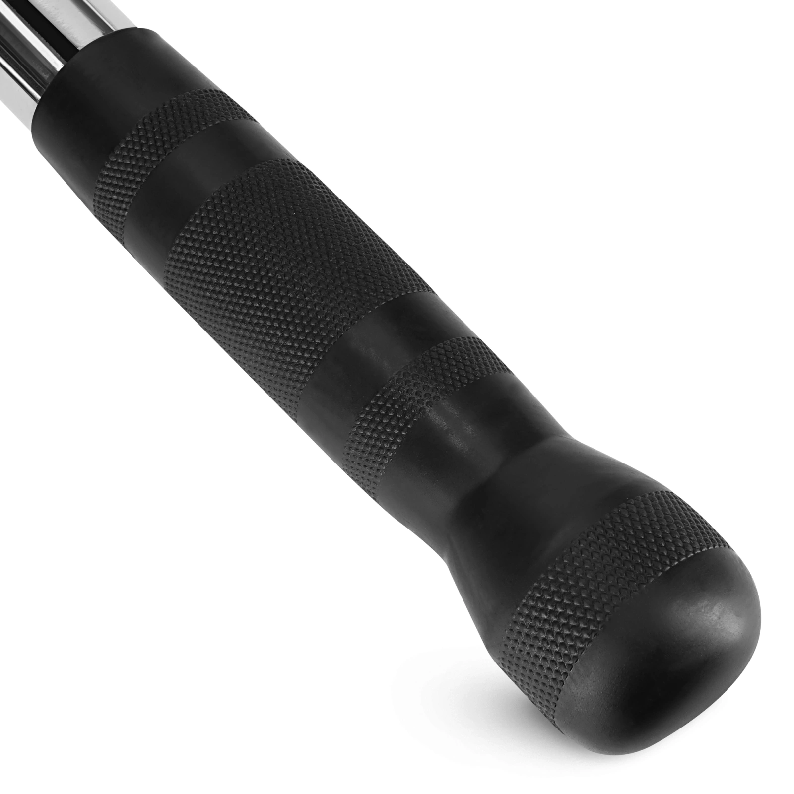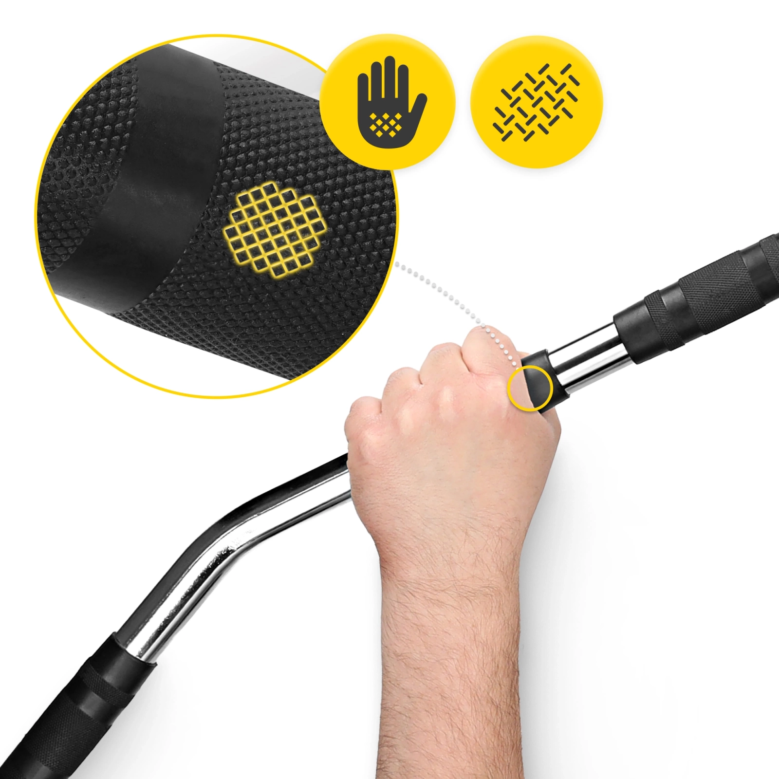 ✅ Elementele de cauciuc ale mânerului previn alunecarea acestuia din mână în timpul antrenamentului, ceea ce este extrem de util în exercițiile cu încărcături mari.