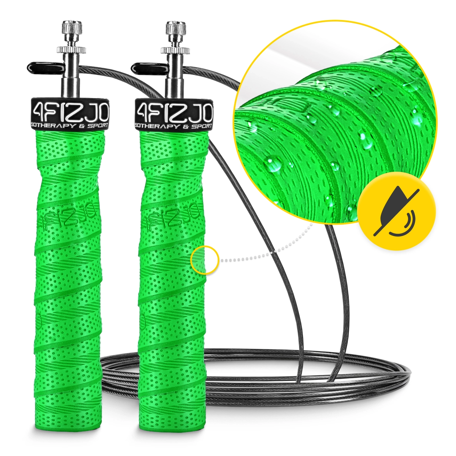 Coardă de sărit cu greutate 4FIZJO de culoare verde