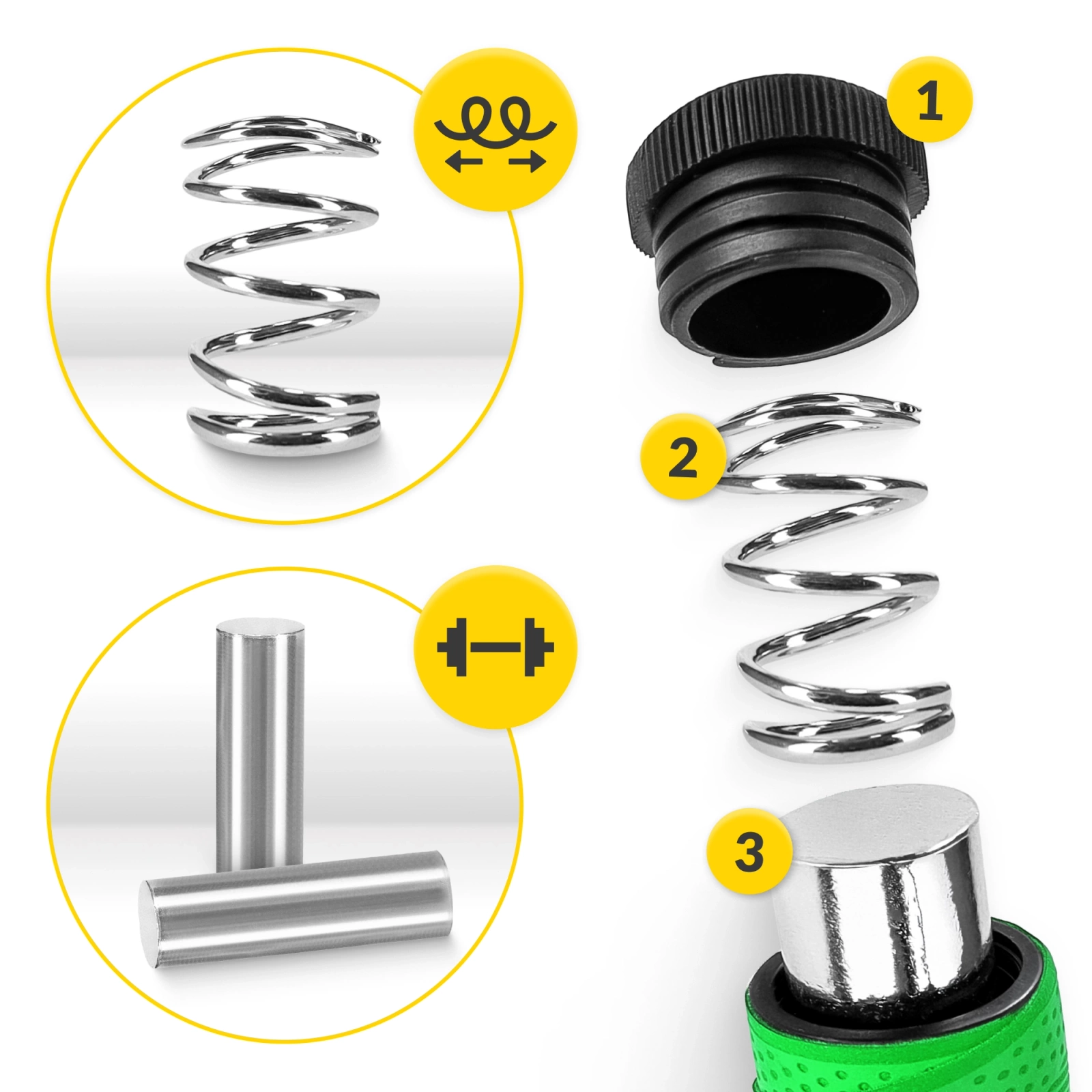 ✅ Mânerele ergonomice stau perfect în mâini. În timpul antrenamentelor intensive, prinderea rămâne fermă și încheieturile nu obosesc. Mânerele echipate cu învelișuri din spumă nu absorb umezeala și sunt antiderapante.