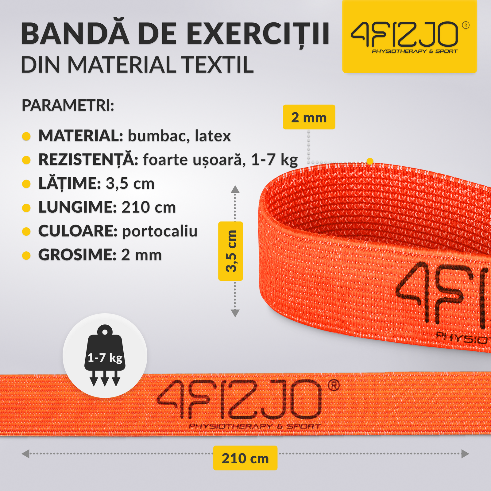 Cauciuc textil pentru exerciții POWER BAND 4FIZJO 1-7 kg - Portocaliu