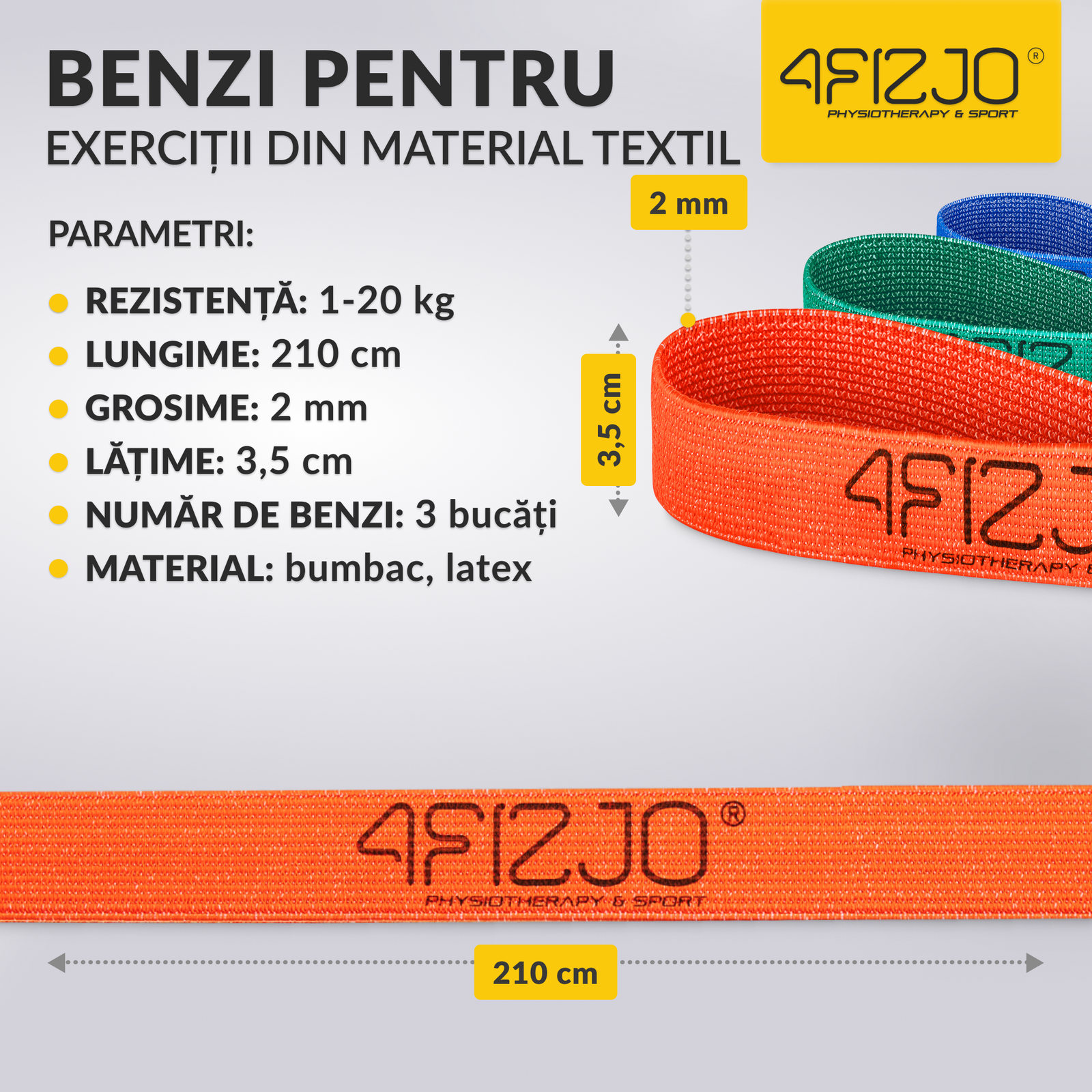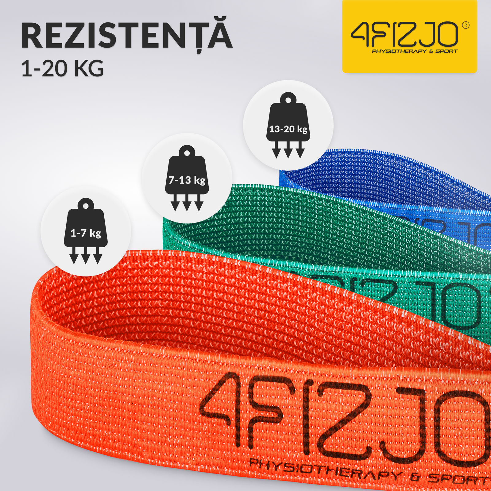 Set de 3 benzi de rezistență pentru exerciții POWER BAND 4FIZJO, din material