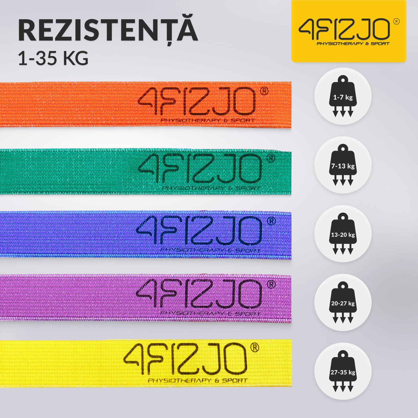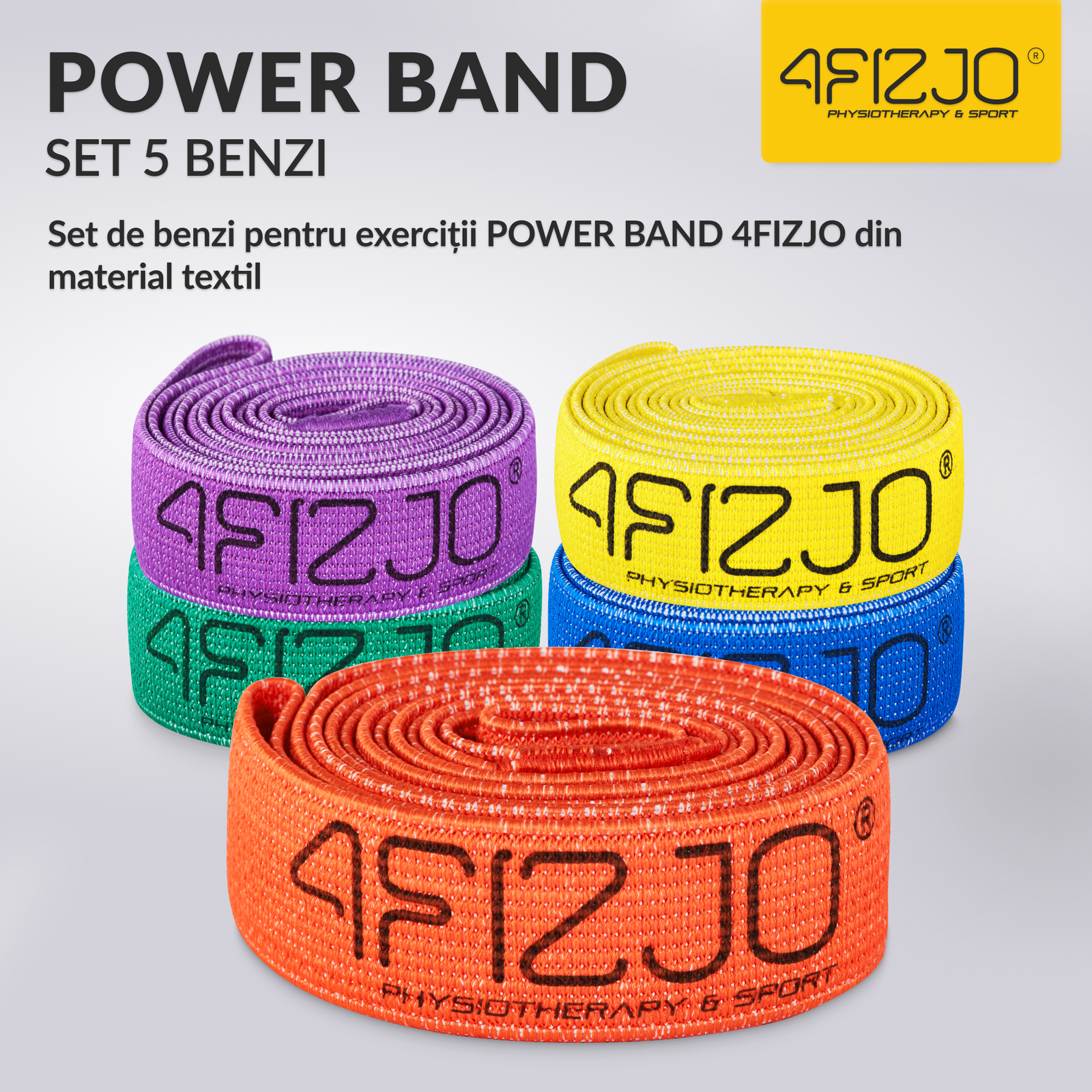 Set de 5 benzi de rezistență pentru exerciții POWER BAND 4FIZJO, din material