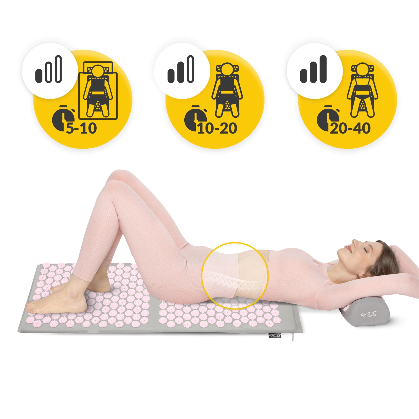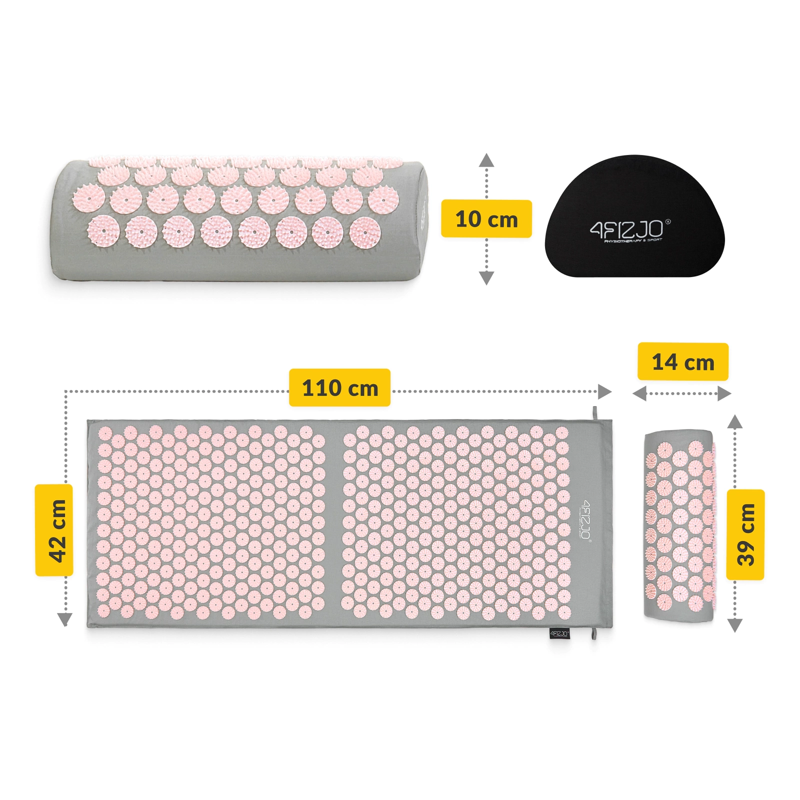 Saltea mare de acupunctură cu pernă XL 4FIZJO classic – Gri-Roz