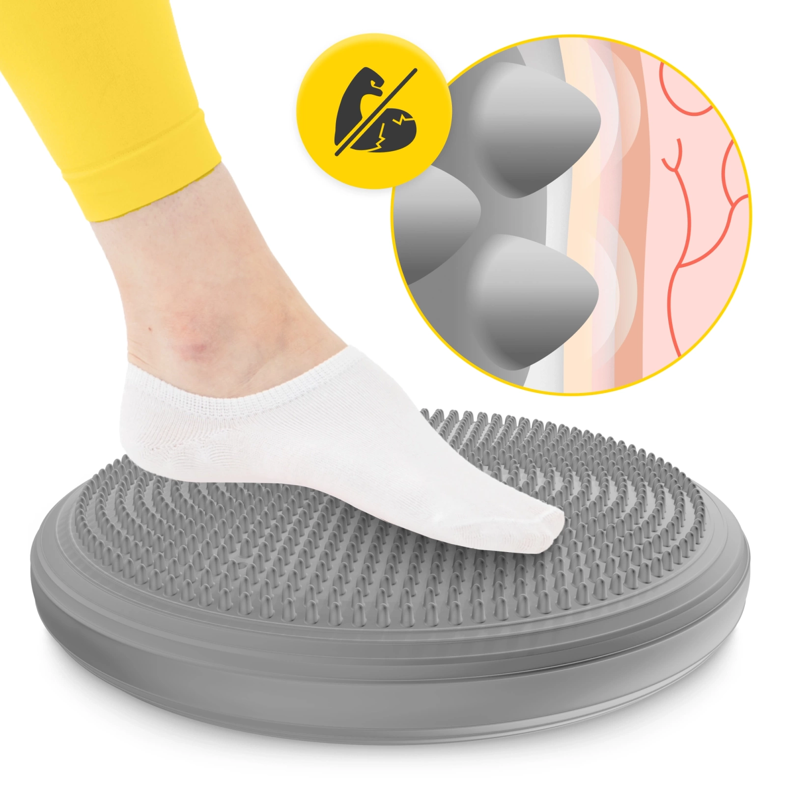 ✅ Creste stabilitatea - perna senzorială este ideală pentru antrenarea echilibrului. Stând pe ea și efectuând jumătăți de ghemuit sau exerciții de echilibru îmbunătățește coordonarea corpului și stabilitatea articulațiilor. Exercițiile pe disc sunt recomandate persoanelor în vârstă.