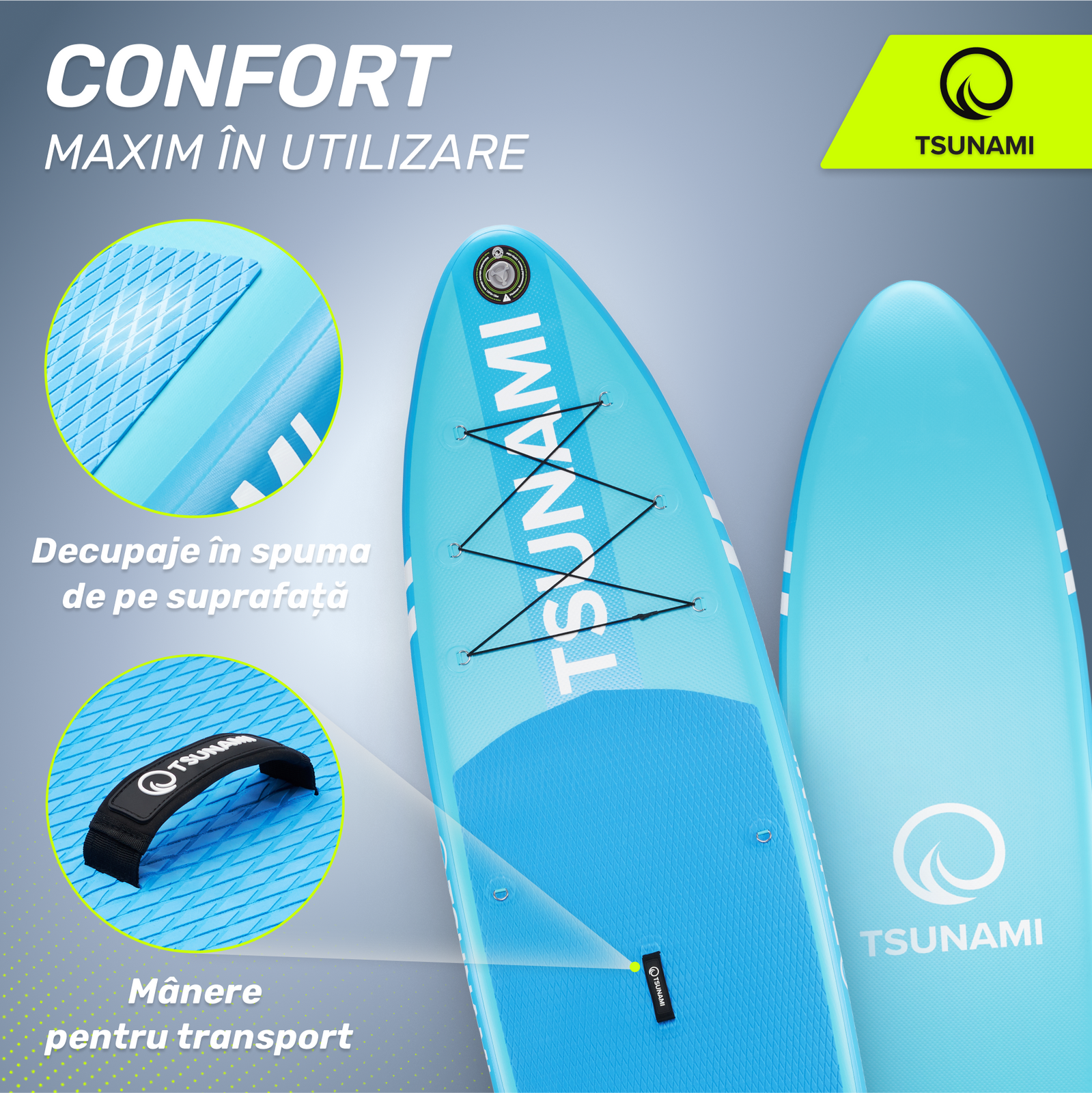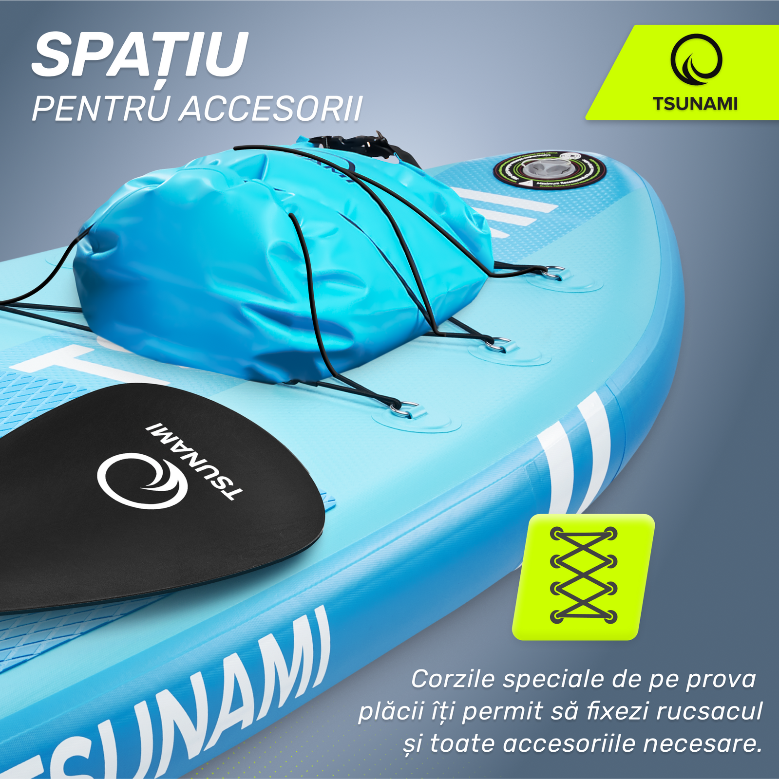 Placa SUP cu vâslă TSUNAMI este un echipament versatil pentru sporturi nautice. Consultă specificațiile pentru a alege modelul perfect pentru nevoile tale.