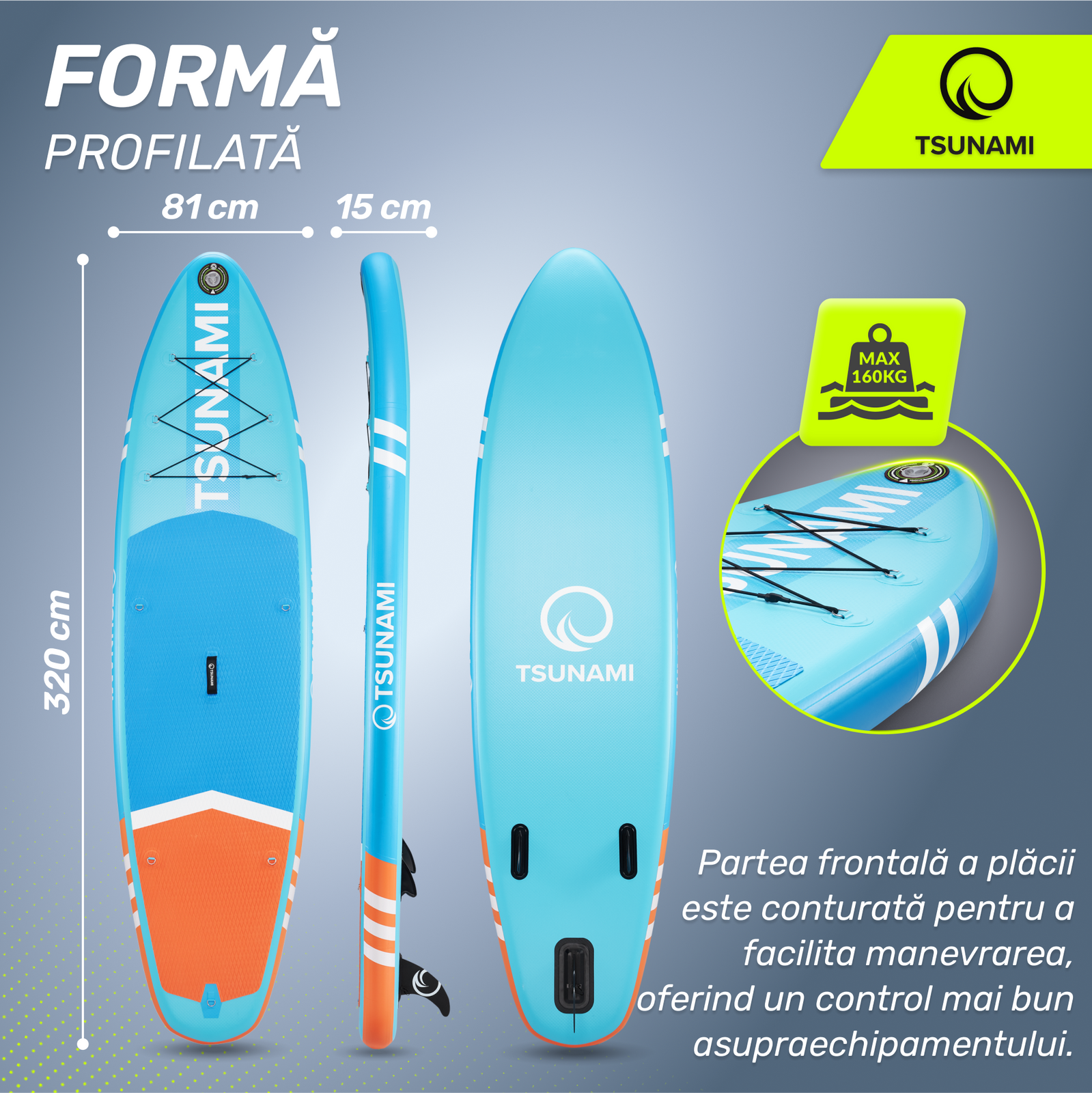 Placă SUP gonflabilă pentru apă TSUNAMI 320 cm