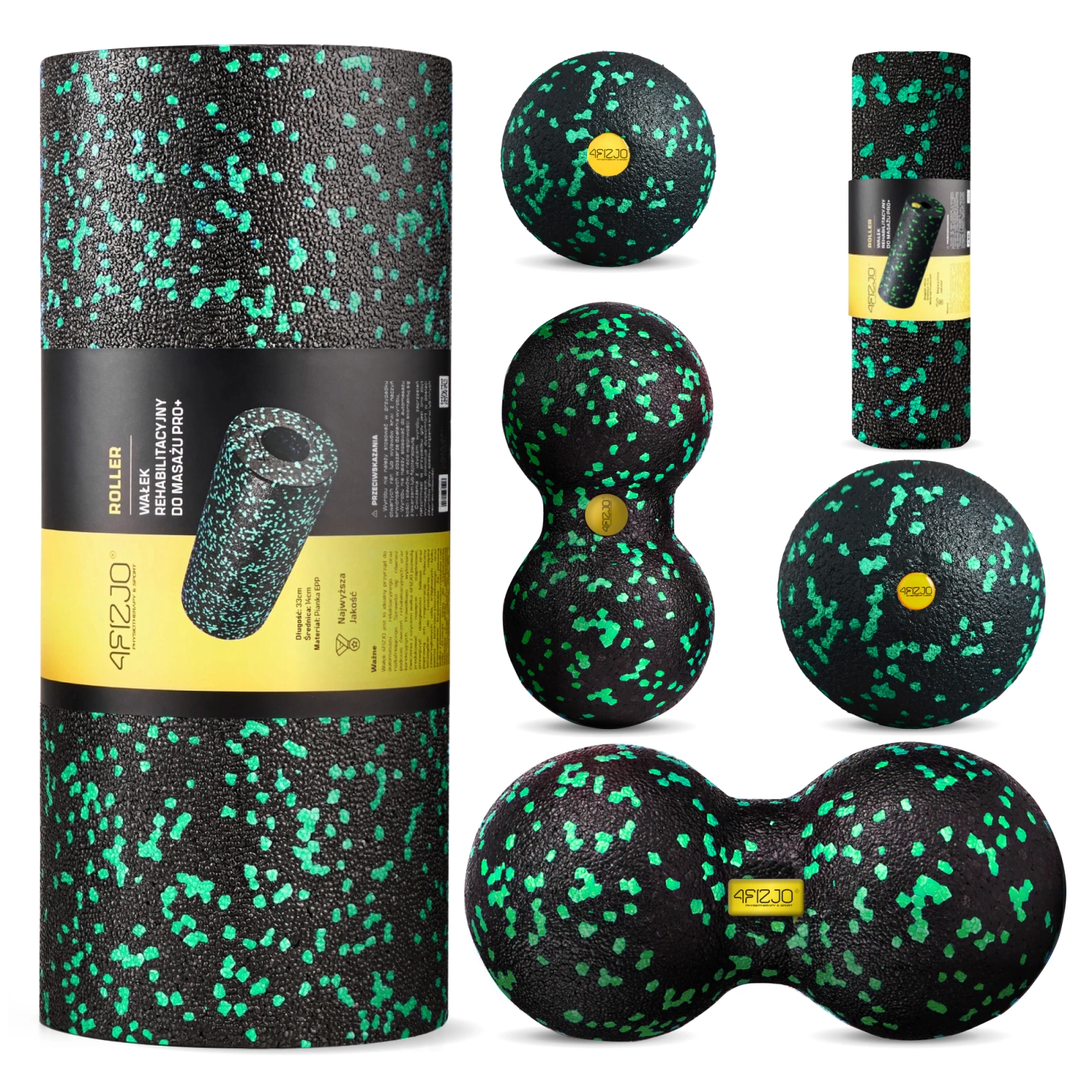 ✔️ Setul include: rolă 33 cm, rolă MINI 15 cm, bile de masaj de 8 și 12 cm, bile duble de 8 și 12 cm
