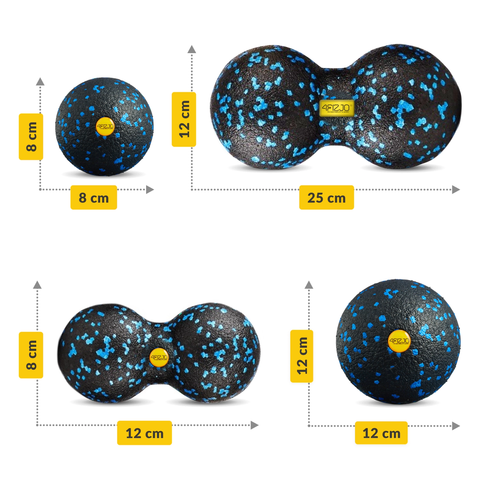 ✔️ Setul include: rolă 33 cm, rolă MINI 15 cm, bile de masaj de 8 și 12 cm, bile duble de 8 și 12 cm