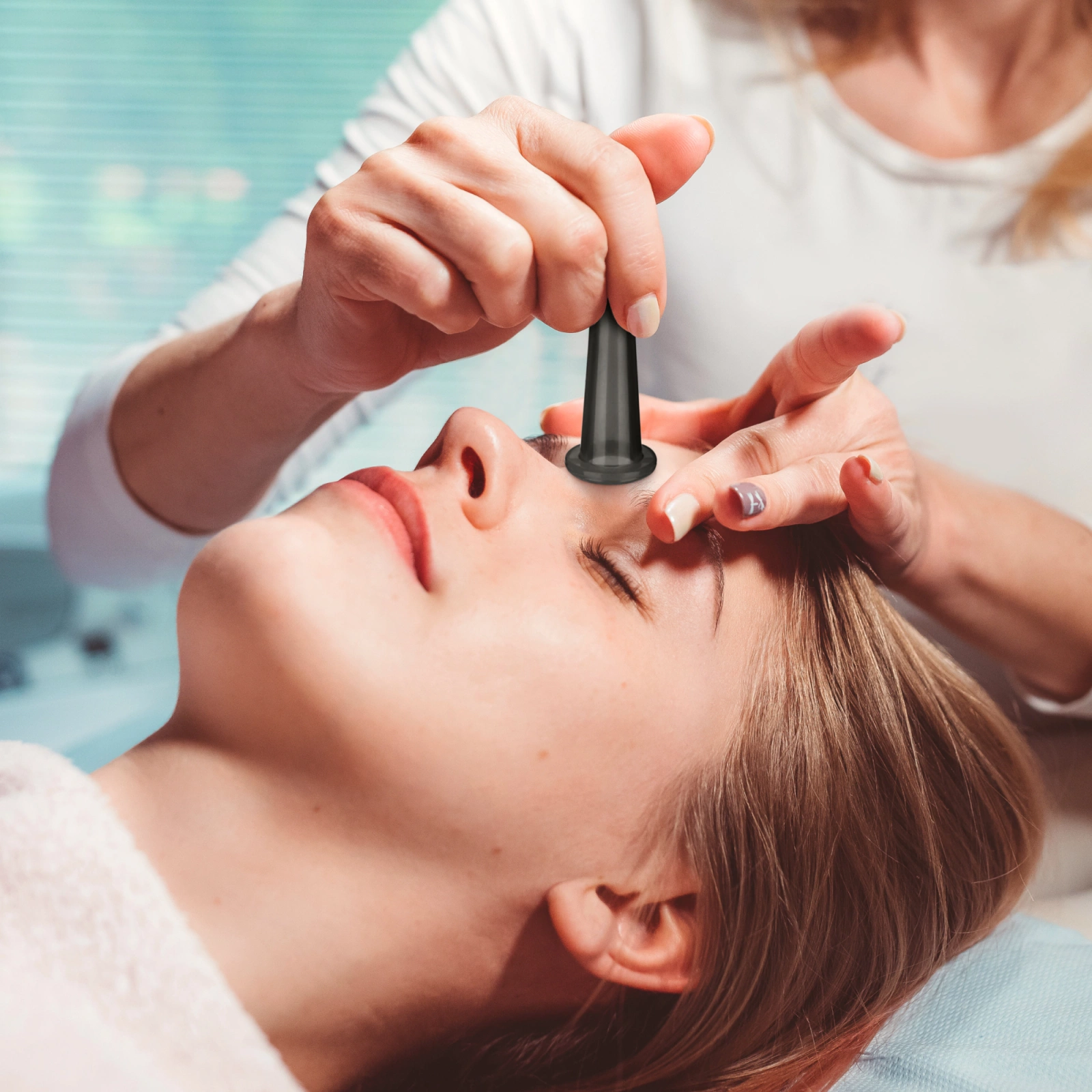 2️⃣ Așeză o bulă chinezească de dimensiuni adecvate pe piele și stoarce-o ușor.