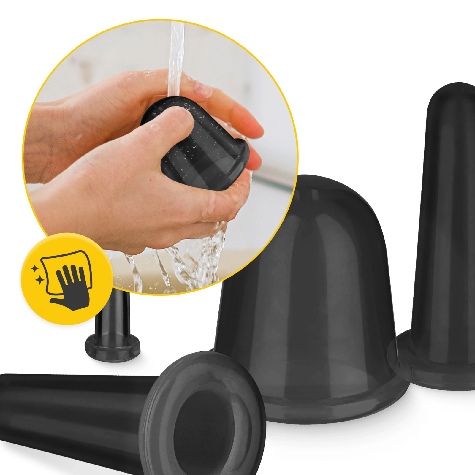 ✅ Bulele de silicon sunt ușor de utilizat. Datorită forței scăzute de aspirație, nu există riscul de vânătăi, ceea ce este important mai ales în zona facială.
