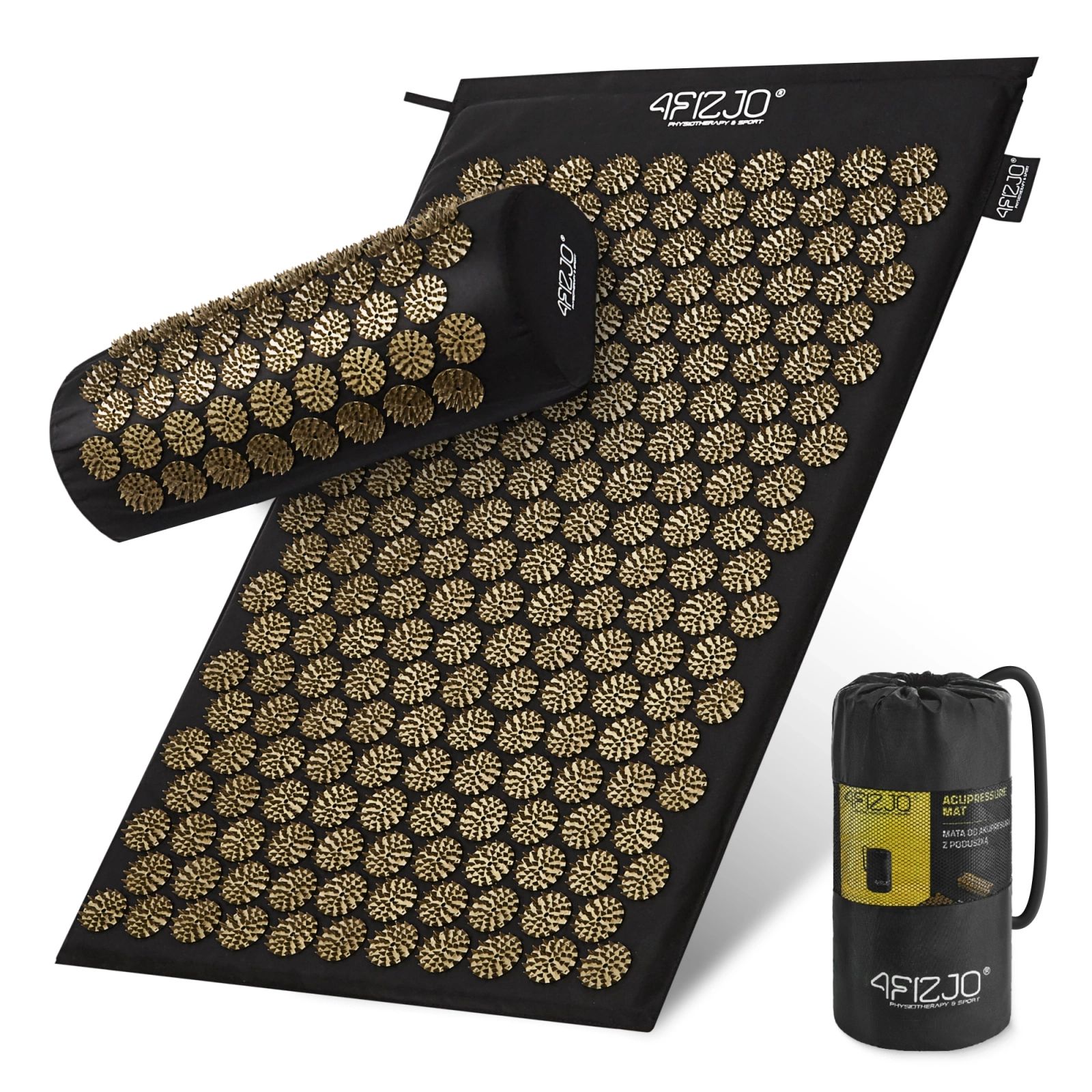 Covoraș de presopunctură cu pernă clasic 4FIZJO - negru și auriu