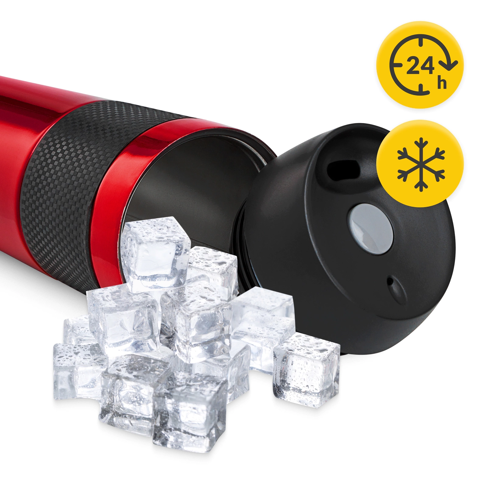 Sau îți plac băuturile bine răcite? Cana termică  le păstrează reci pana la 24 de ore. O dată pentru totdeauna, uită să mai beai apă caldă atunci când călătorești, chiar și în zilele călduroase.