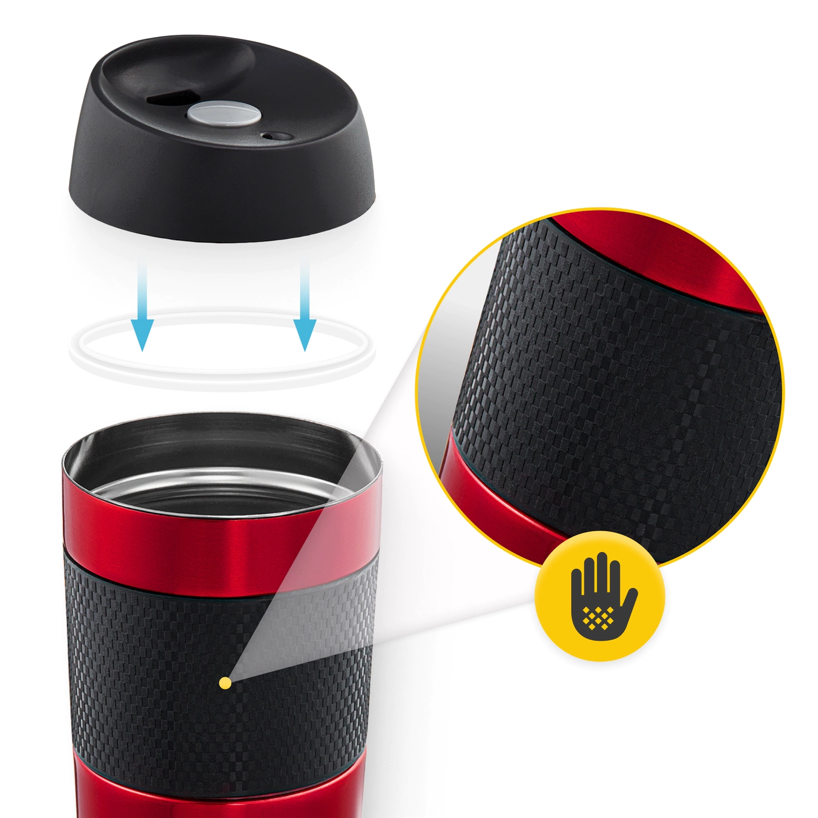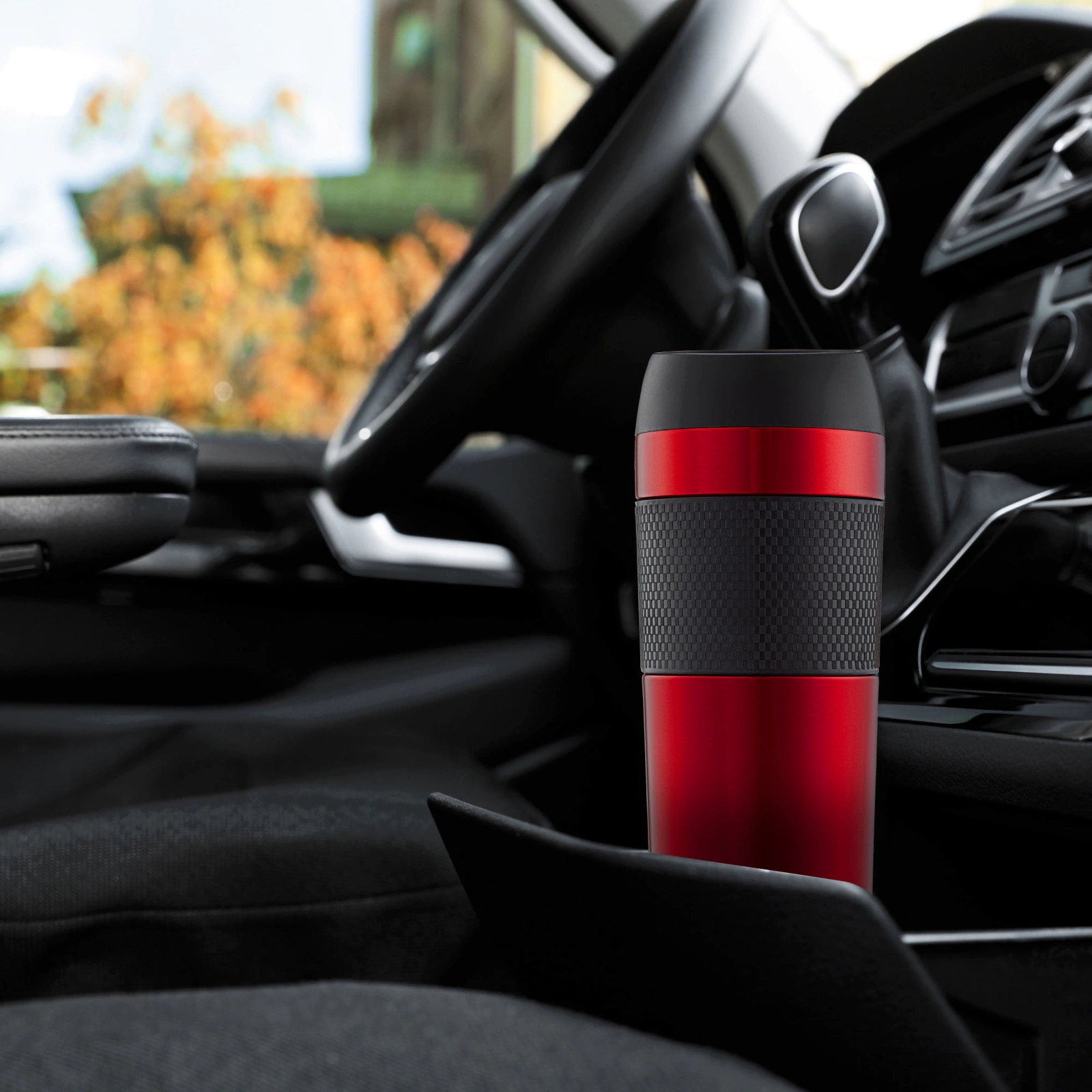 Forma ergonomică a cănii termice pentru ceai și cafea asigură o ținere confortabilă și stabilă în mână. Baza antiderapantă împiedică alunecarea. Capacitatea de 400 ml va conține aproape două cești de cafea sau ceai preferat. În plus, dimensiunea la îndemână înseamnă că ceașca nu ocupă mult spațiu. Se va potrivi cu ușurință în compartimentul ușii laterale și în mânerele mașinii.