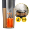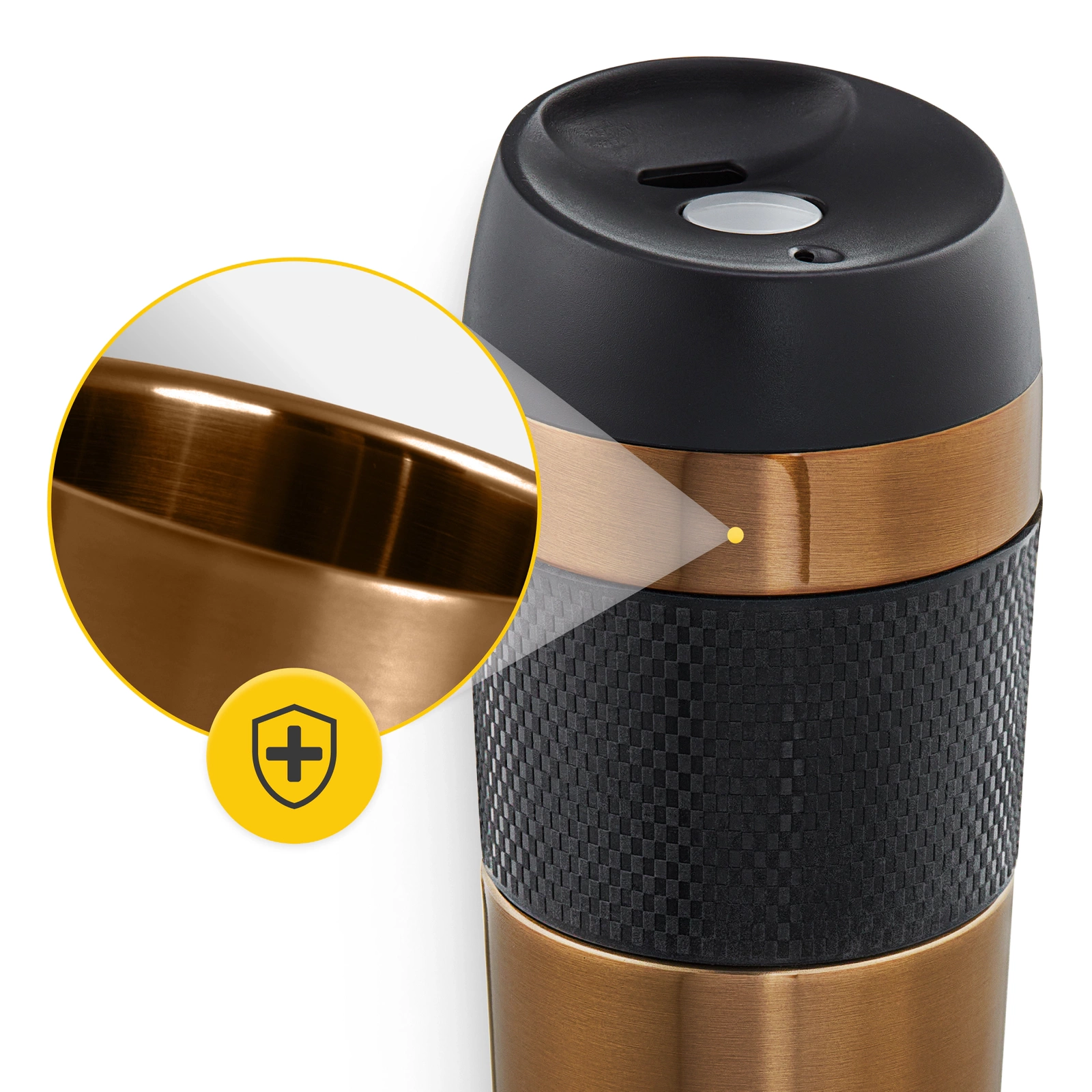 Cana termică pentru ceai și cafea este ideală și pentru cei care lucrează de acasă. Toarnă băutura fierbinte în ea și pune-o pe birou fără griji - închiderea cu buton sigilează bine gura cănii pentru a împiedică vărsarea băuturii. Astfel, nu vei inunda computerul sau documentele.