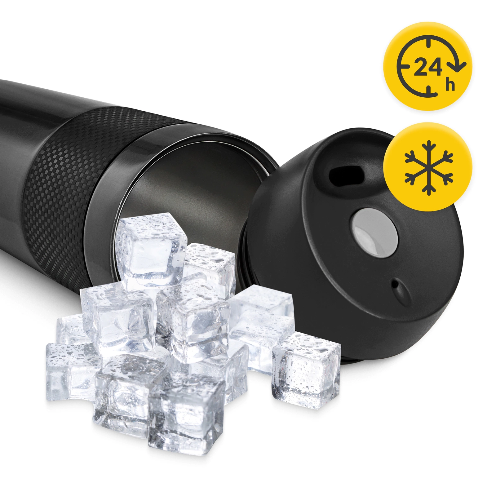 Sau îți plac băuturile bine răcite? Cana termică  le păstrează reci pana la 24 de ore. O dată pentru totdeauna, uită să mai beai apă caldă atunci când călătorești, chiar și în zilele călduroase.