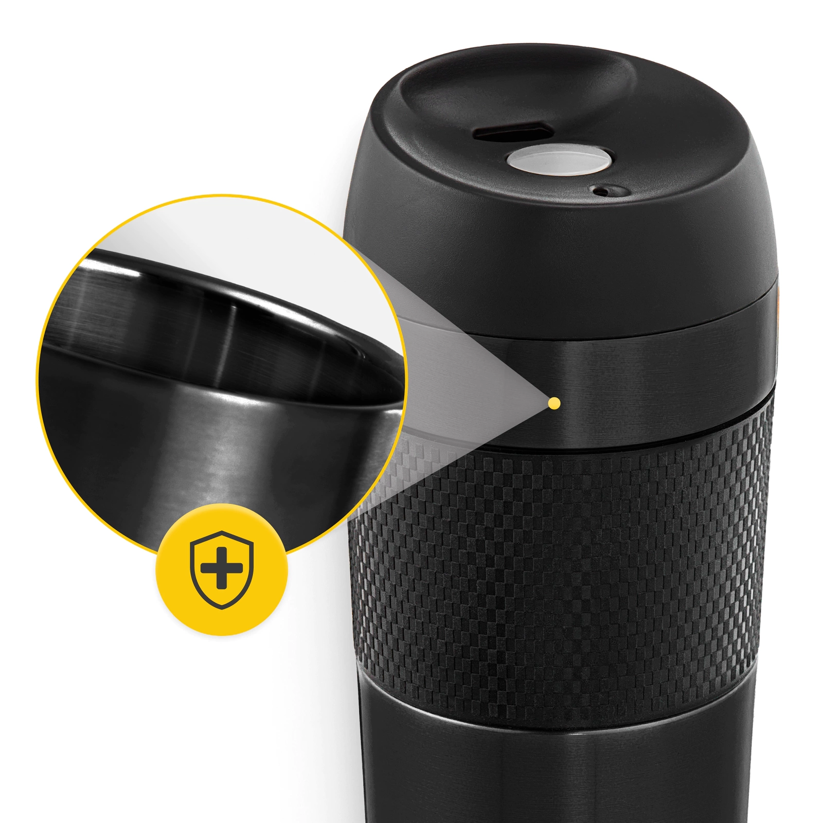 Cana termică  pentru ceai și cafea este ideală și pentru cei care lucrează de acasă. Toarnă băutura fierbinte în ea și pune-o pe birou fără griji - închiderea cu buton sigilează bine gura cănii pentru a împiedică vărsarea băuturii. Astfel, nu vei inunda computerul sau documentele.