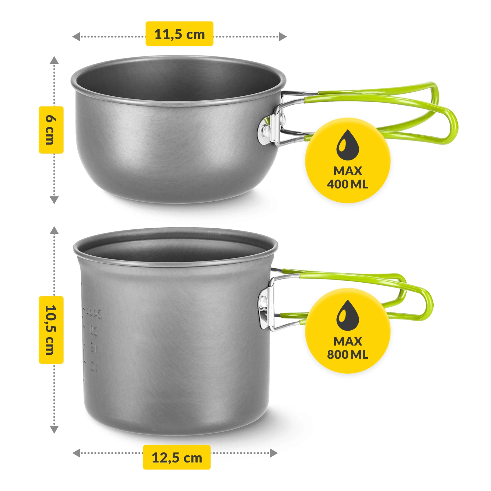 Datorită dimensiunilor compacte și construcției ușoare, acest set este perfect pentru călătorii, ocupând puțin spațiu în rucsac. Este ideal pentru persoanele care doresc să se bucure de mese delicioase în aer liber, fără a fi nevoie să transporte oale grele.