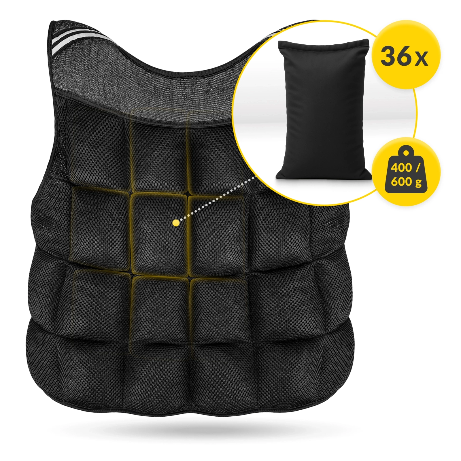 Vesta de antrenament cu greutate de 20 kg este ideală pentru persoanele care doresc să își întărească mușchii și să își îmbunătățească condiția fizică. Este, de asemenea, echipamentul sportiv potrivit pentru a te ajuta să crești intensitatea exercițiilor. În plus, purtarea unei veste cu greutăți oferă o stabilizare foarte bună, de exemplu atunci când ridici greutăți. Cu vesta cu greutăți poți efectua flotări, tracțiuni sau ridicări de greutăți. De asemenea, va funcționa bine pentru sporturile de luptă și antrenament:
