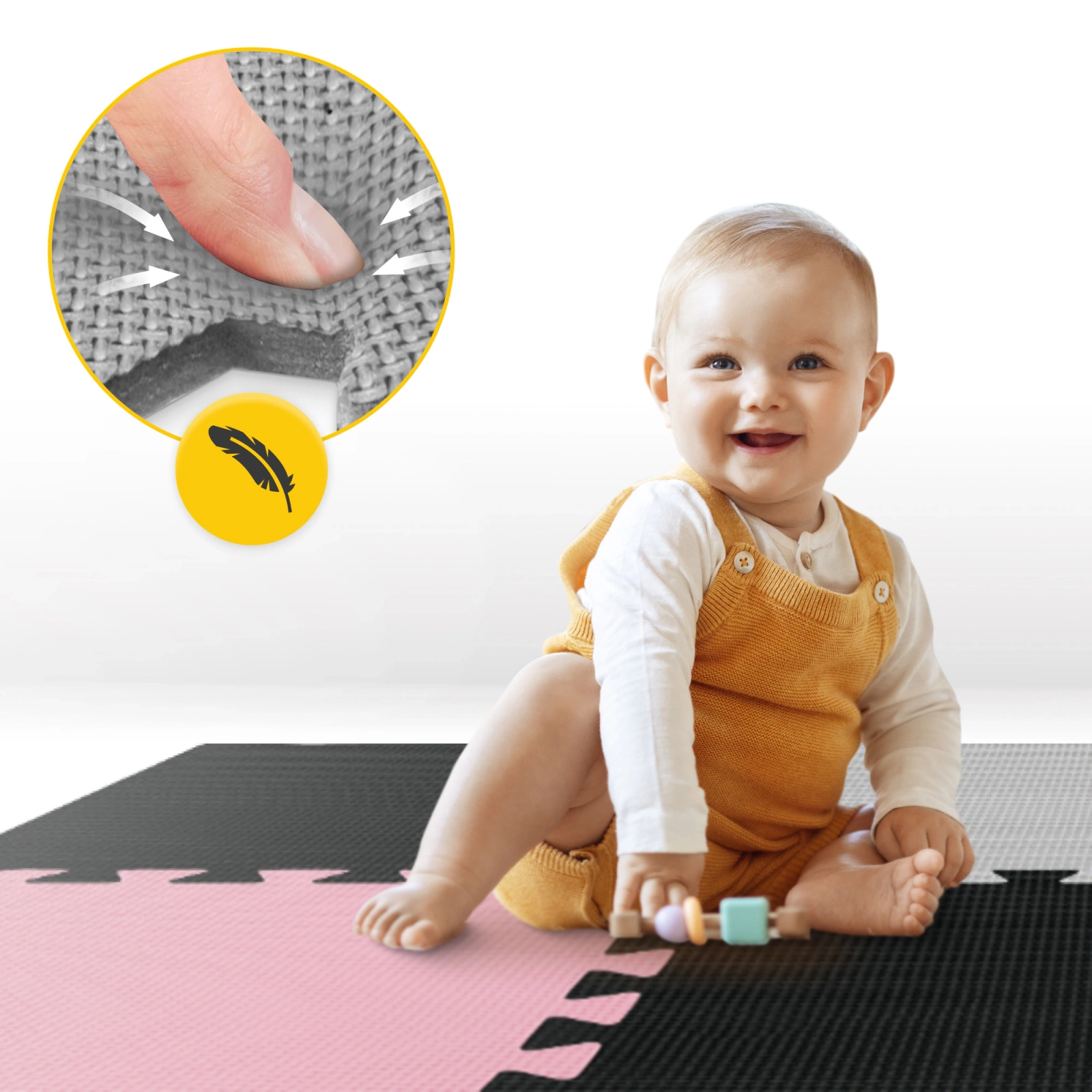 ✅ Protecție în timpul jocului - ideal pentru târâre și învățarea mersului, protejează copilul de căderi.