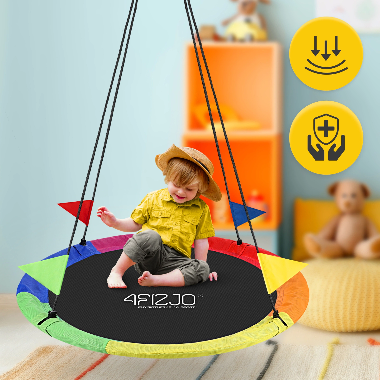 Creează acasă un spațiu de joacă minunat și plin de inspirație pentru copii. Leagănul cuib de barză 4FIZJO oferă confort și funcționalitate, fiind potrivit atât pentru interior, cât și pentru exterior. Îl poți instala pe terasă, balcon, în grădină sau în foișor, oferindu-le celor mici momente active în aer liber. De asemenea, îl poți agăța în camera de zi sau în camera copilului, pentru a crea un loc special de relaxare și petrecere a timpului în familie. Este important ca locul ales să ofere suficient spațiu pentru balansare în siguranță.