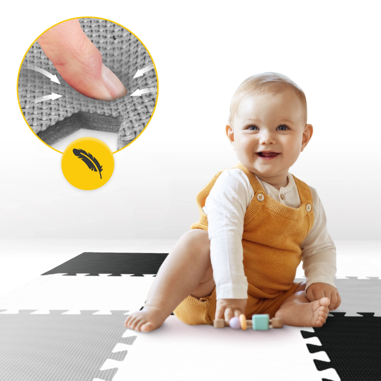 ✅ Protecție în timpul jocului – ideal pentru mers de-a bușilea și învățarea mersului, protejează copilul de căzături.