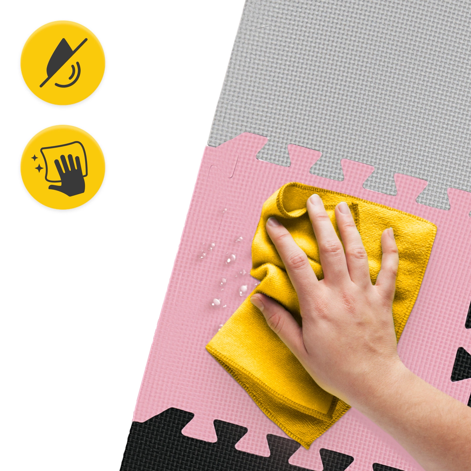 Covor puzzle educațional pentru copii 90 x 90 cm roz