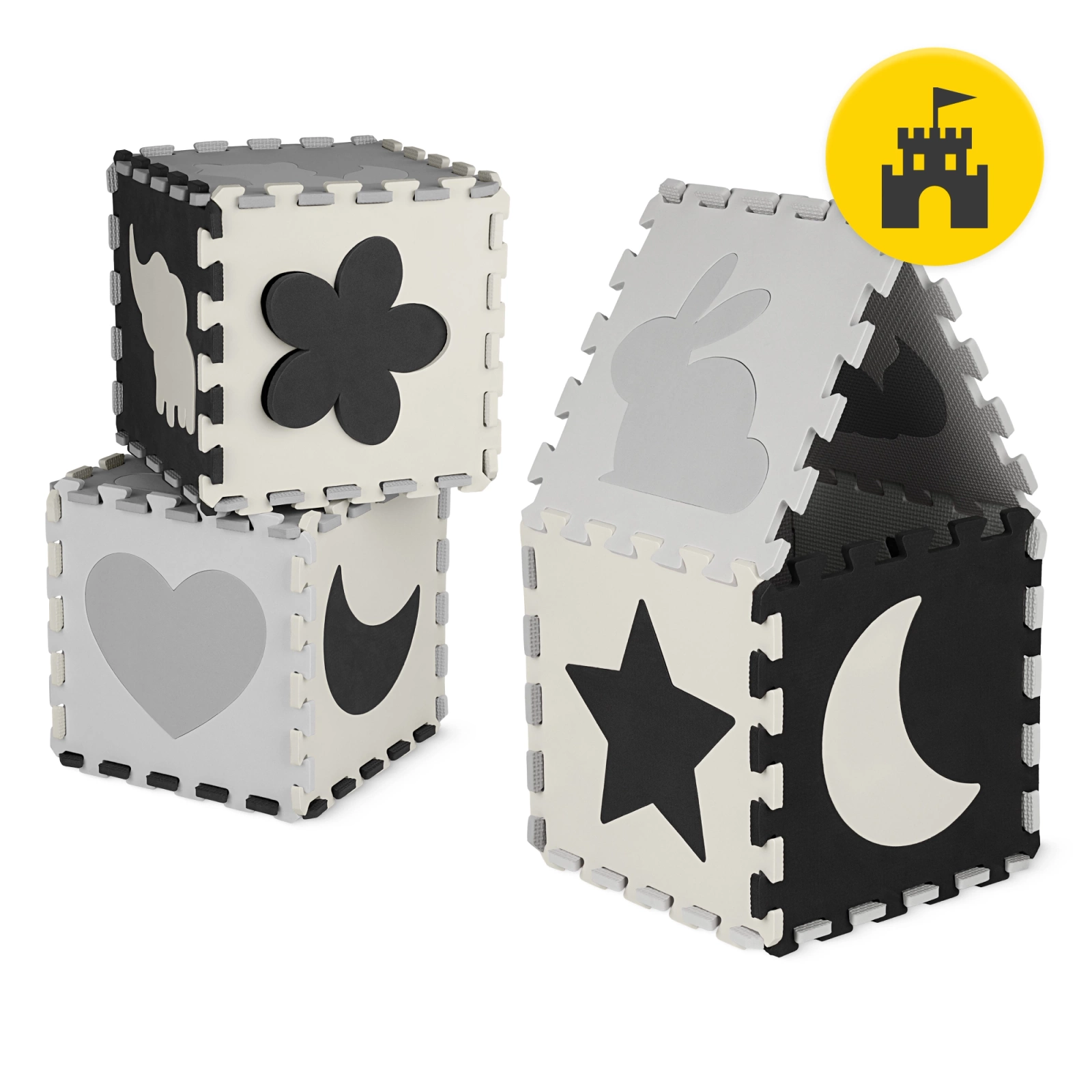 Covorașul mare din spumă oferă posibilități nelimitate de joacă. Poate deveni rapid locul ideal pentru joacă în aer liber și poate fi transformat într-o bază secretă. Datorită pieselor modulare în formă de puzzle, le poți conecta într-o mulțime de configurații diferite. Iar dacă jucăriile copilului sunt împrăștiate prin întreaga casă, folosește puzzle-urile din spumă pentru a construi o cutie practică pentru depozitare. Această formă creativă de curățenie este o idee excelentă pentru a-l învăța pe micuț să fie ordonat într-un mod simplu și amuzant.