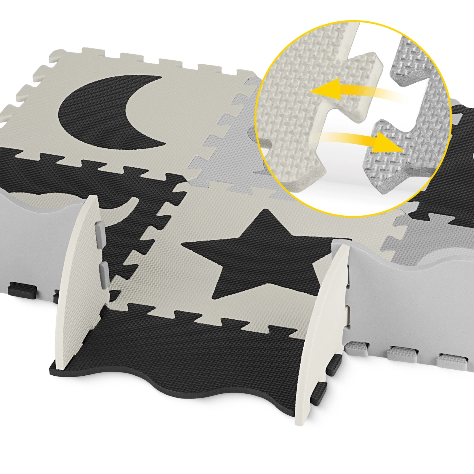 Protecție în timpul jocului – Ideal pentru învățarea mersului de-a bușilea și a primilor pași, protejează copilul de căzături, iar ramele puzzle-urilor permit crearea unui țarc de joacă pentru cei mici.