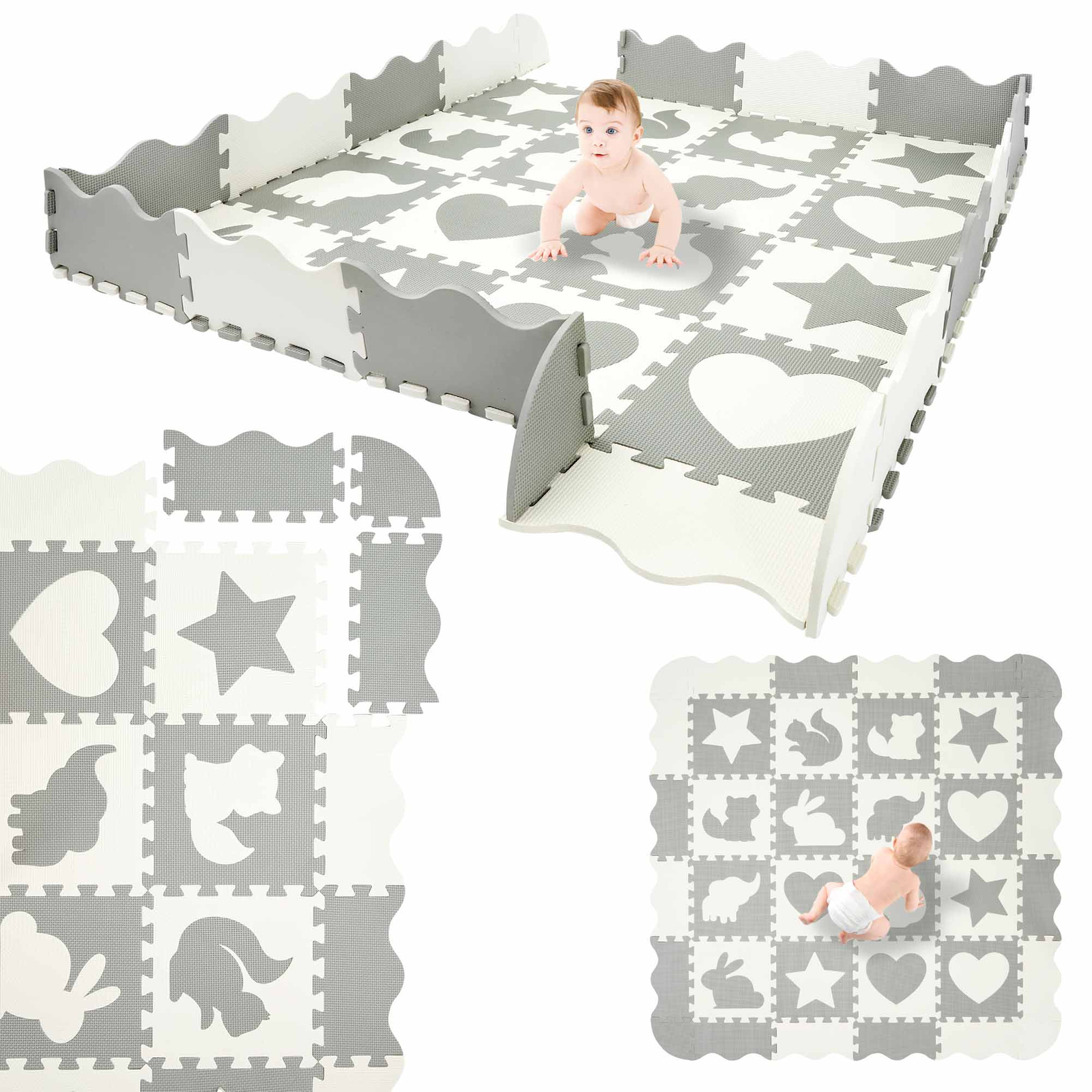 ✅ Protecție în timpul jocului – ideal pentru târâre și învățarea mersului, protejează copilul de căzături, iar ramele puzzle-urilor permit realizarea unui pătuț din covoraș pentru cei mai mici.