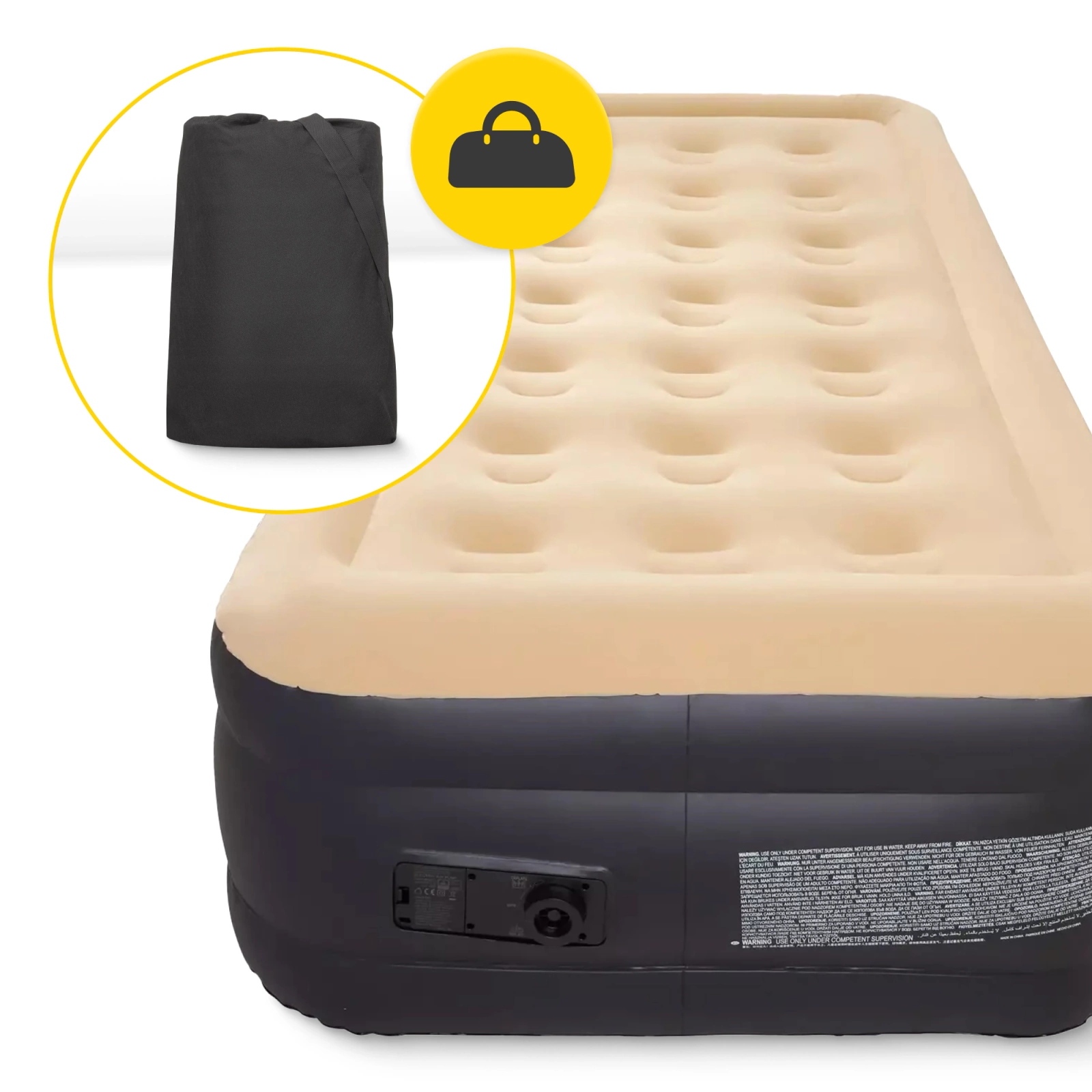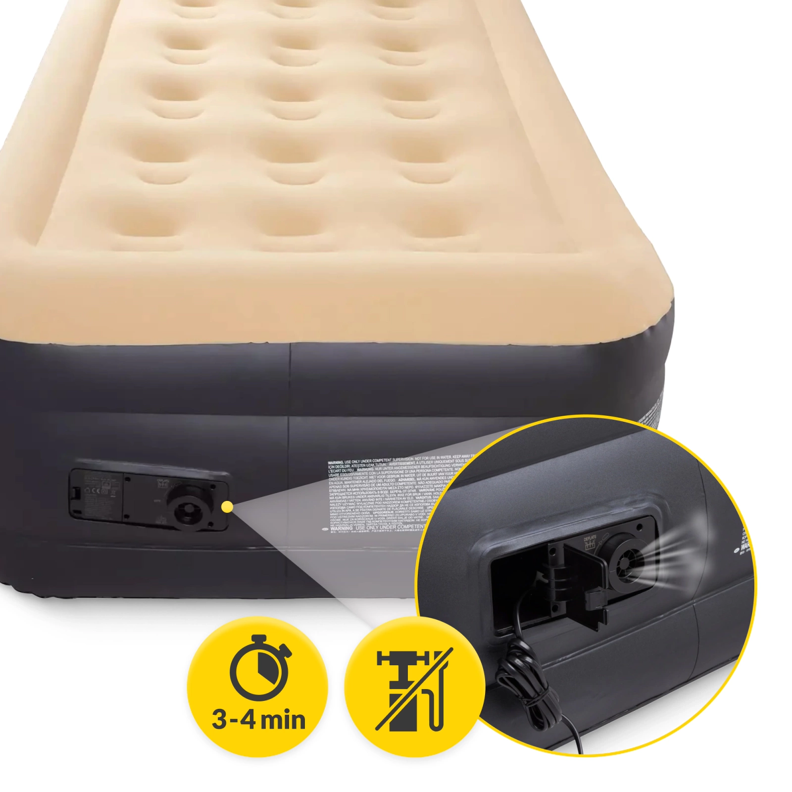 Pompa electrică încorporată permite umflarea și dezumflarea rapidă a saltelei, economisindu-vă timp și efort și eliminând dificultatea de a o împacheta la finalul călătoriei. Salteaua este ușor de depozitat, fie în dulap, fie în bagaj.