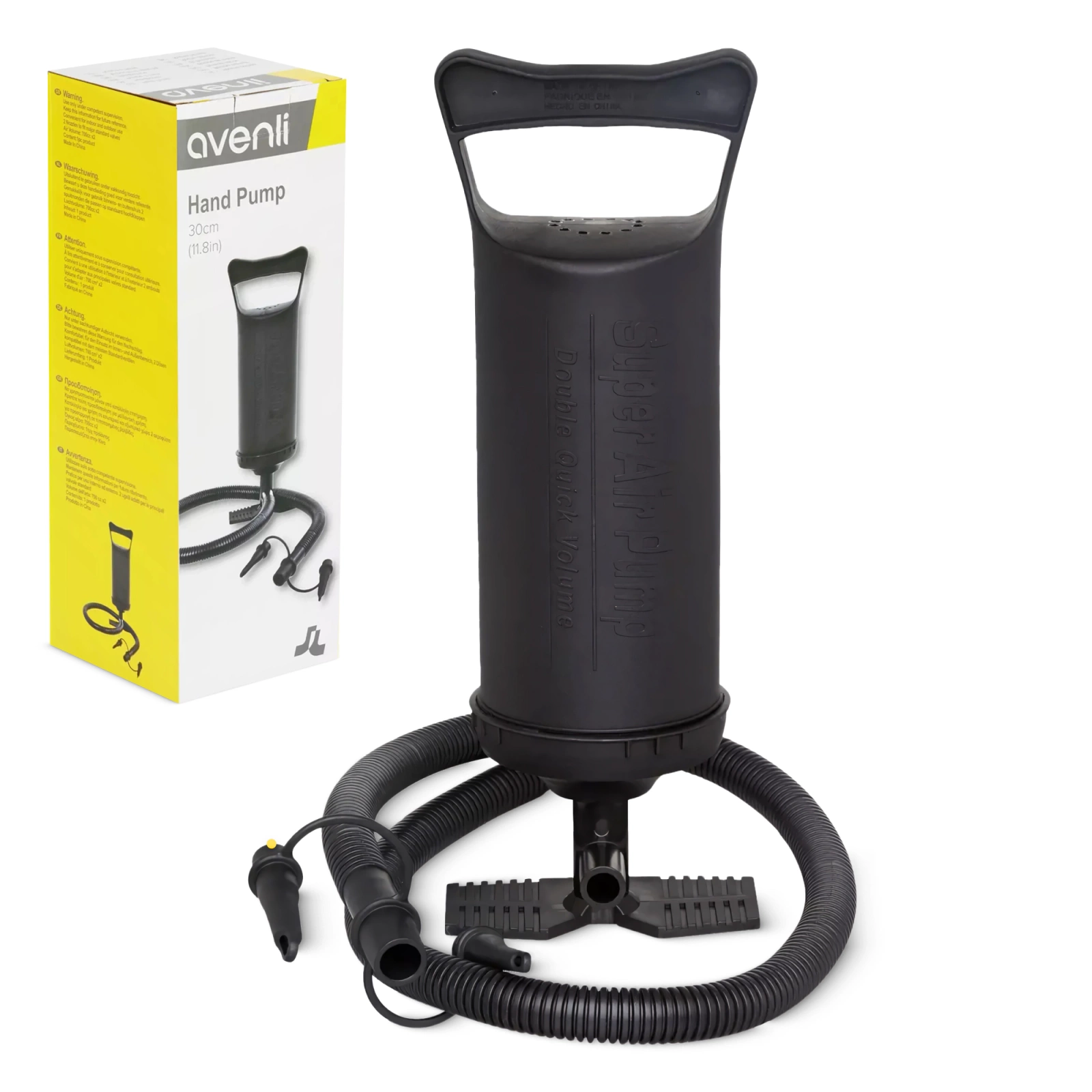 Pompa de saltea de călătorie Avenli este una dintre cele mai bune soluții de pe piață, combinând funcționalitatea cu confortul. Mânerul ergonomic asigură confort în utilizare, eliminând oboseala mâinii și riscul apariției calusurilor. Stabilizatoarele suplimentare de pe ambele părți permit susținerea pompei de greutatea corpului, accelerând procesul de pompare. Trei supape universale o fac compatibilă nu doar cu produsele Avenli, ci și cu pontoane, jucării sau roți de apă. Versatilitatea sa face ca pompa de saltea Avenli să fie un echipament esențial, atât acasă, cât și în deplasare.